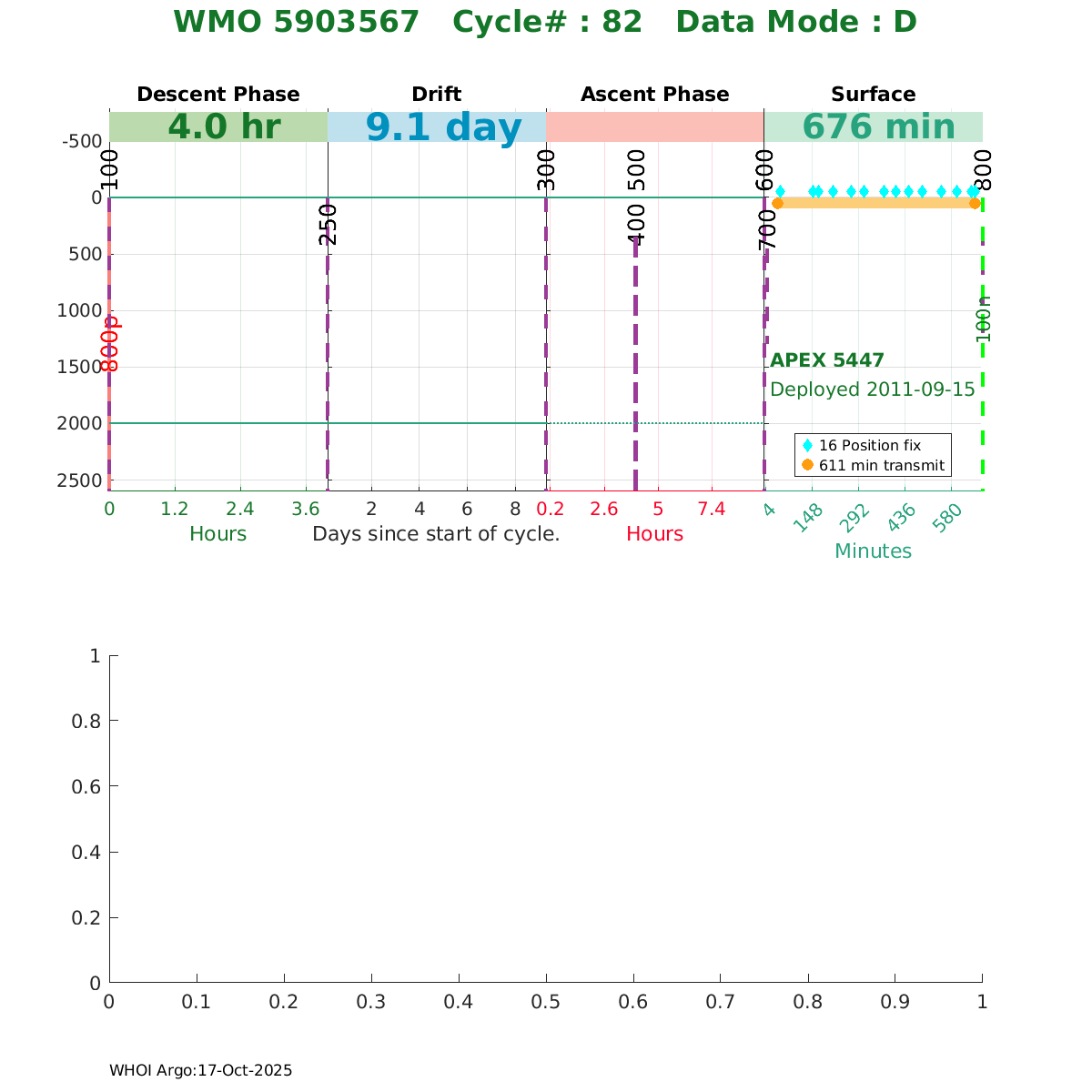 | WMO: #5903567 DAC: aoml PI: STEPHEN RISER APEX: #5447 SBE41: #5403 DRUCK_2900PSIA: #3207531 Altimeter Comparison (IFREMER) EuroArgo Link | ![]() |