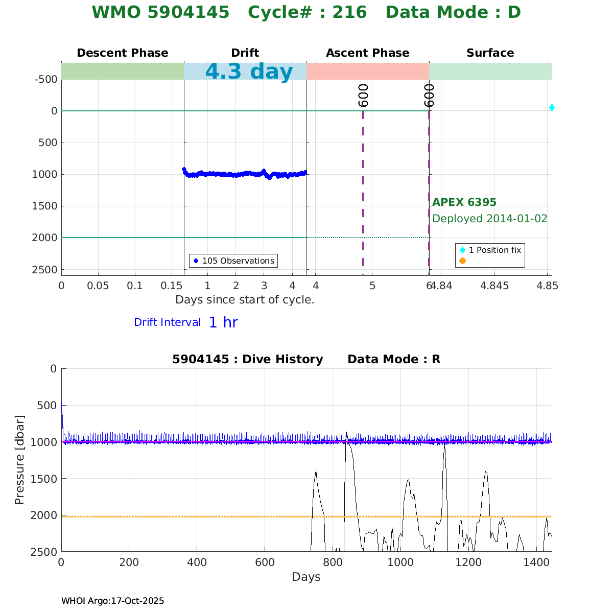 | WMO: #5904908 DAC: csiro PI: Susan Wijffels APEX: #5753 SBE41CP_V2: #3539 DRUCK: #3209095 Altimeter Comparison (IFREMER) EuroArgo Link | ![]() |