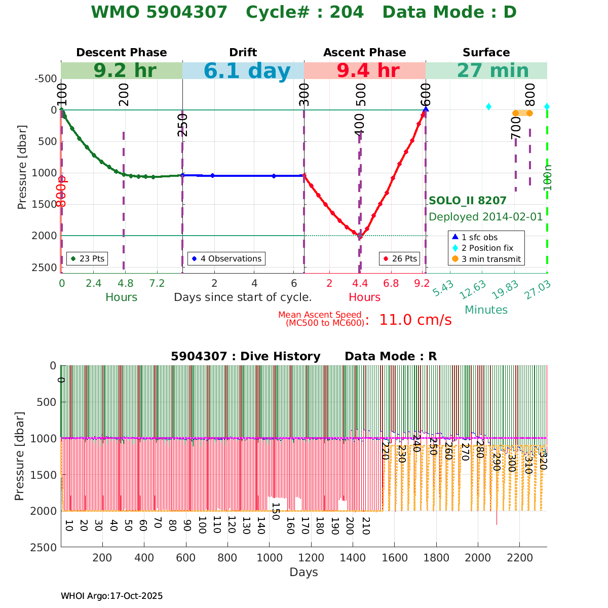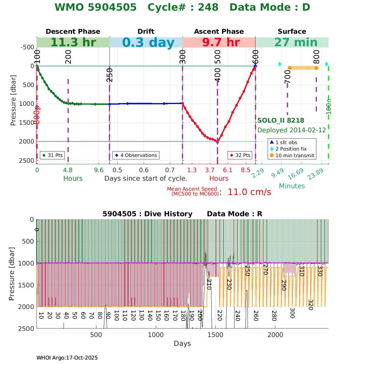 | WMO: #5904505 DAC: aoml PI: Dean ROEMMICH SOLO_II: #8218 DRUCK_2900PSIA: #3772138 SBE41CP: #5285 Altimeter Comparison (IFREMER) EuroArgo Link | ![]() |