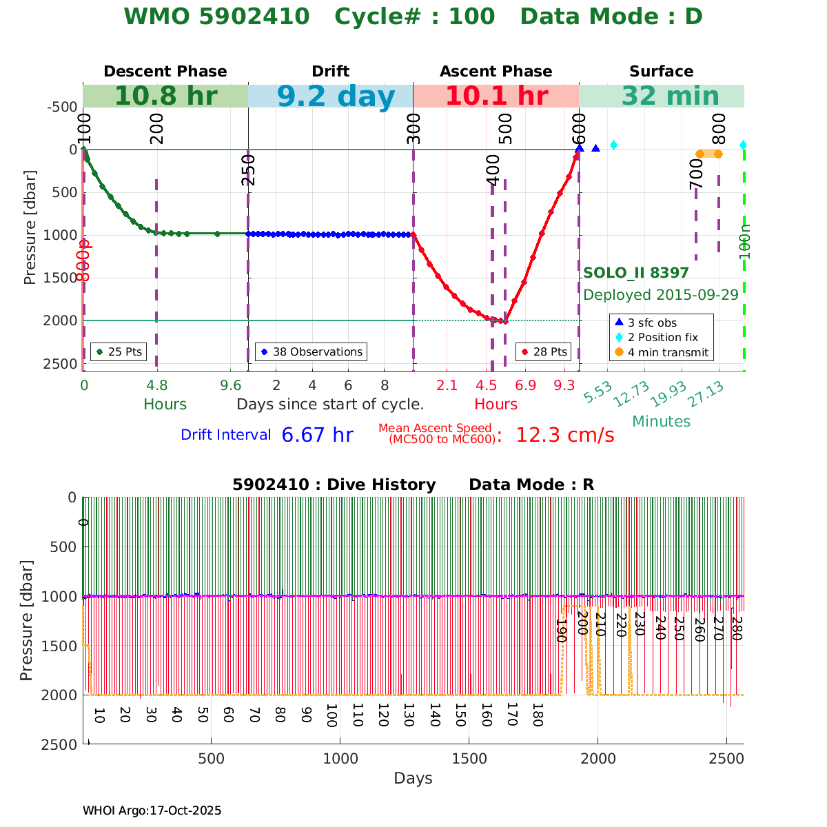 | WMO: #5902423 DAC: aoml PI: Dean ROEMMICH SOLO_II: #8410 DRUCK_2900PSIA: #4171988 SBE41CP: #7110 Altimeter Comparison (IFREMER) EuroArgo Link | ![]() |