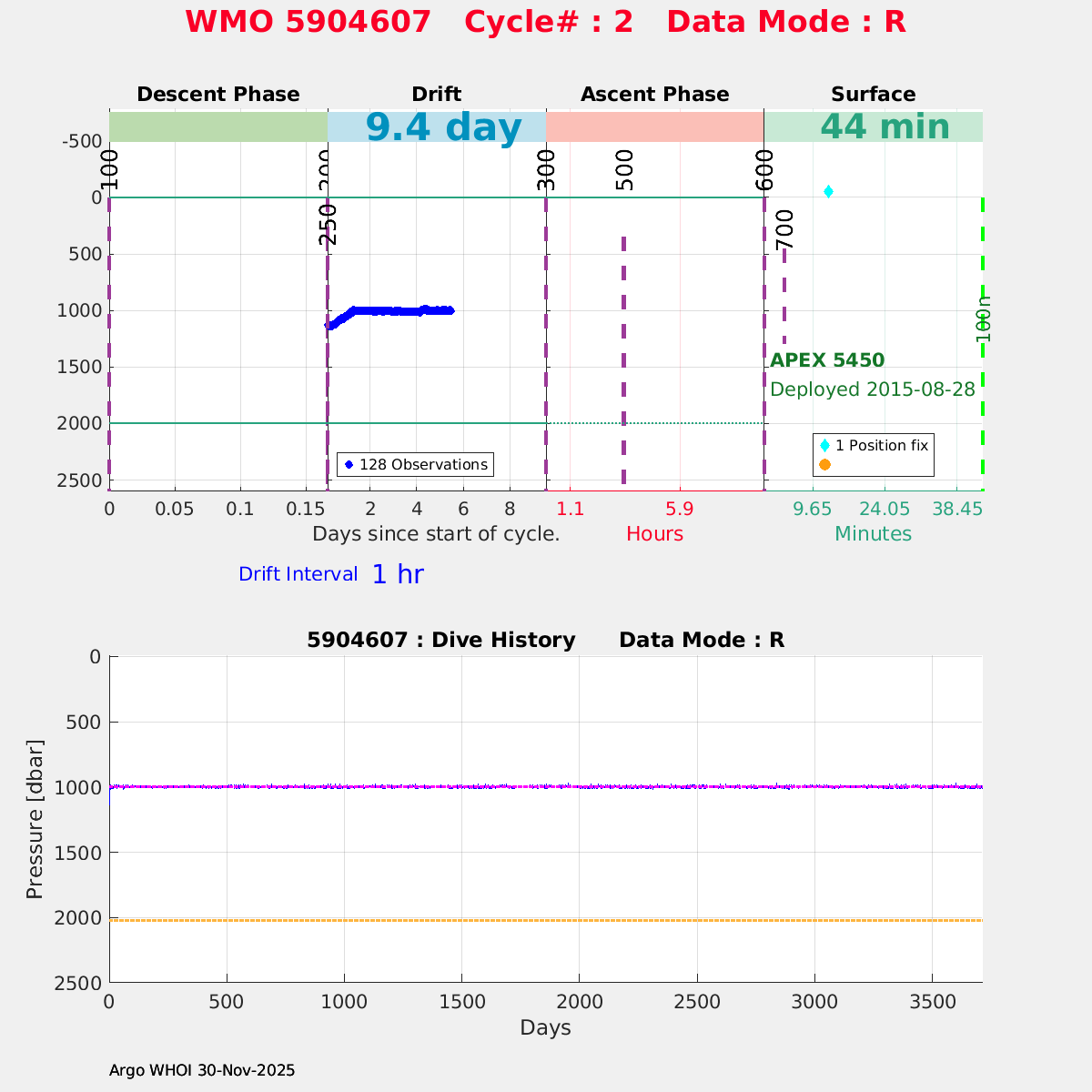 | WMO: #5904607 DAC: aoml PI: STEPHEN RISER APEX: #5450 SBE41CP: #4170 DRUCK_2900PSIA: #3458996 Altimeter Comparison (IFREMER) EuroArgo Link | ![]() |
