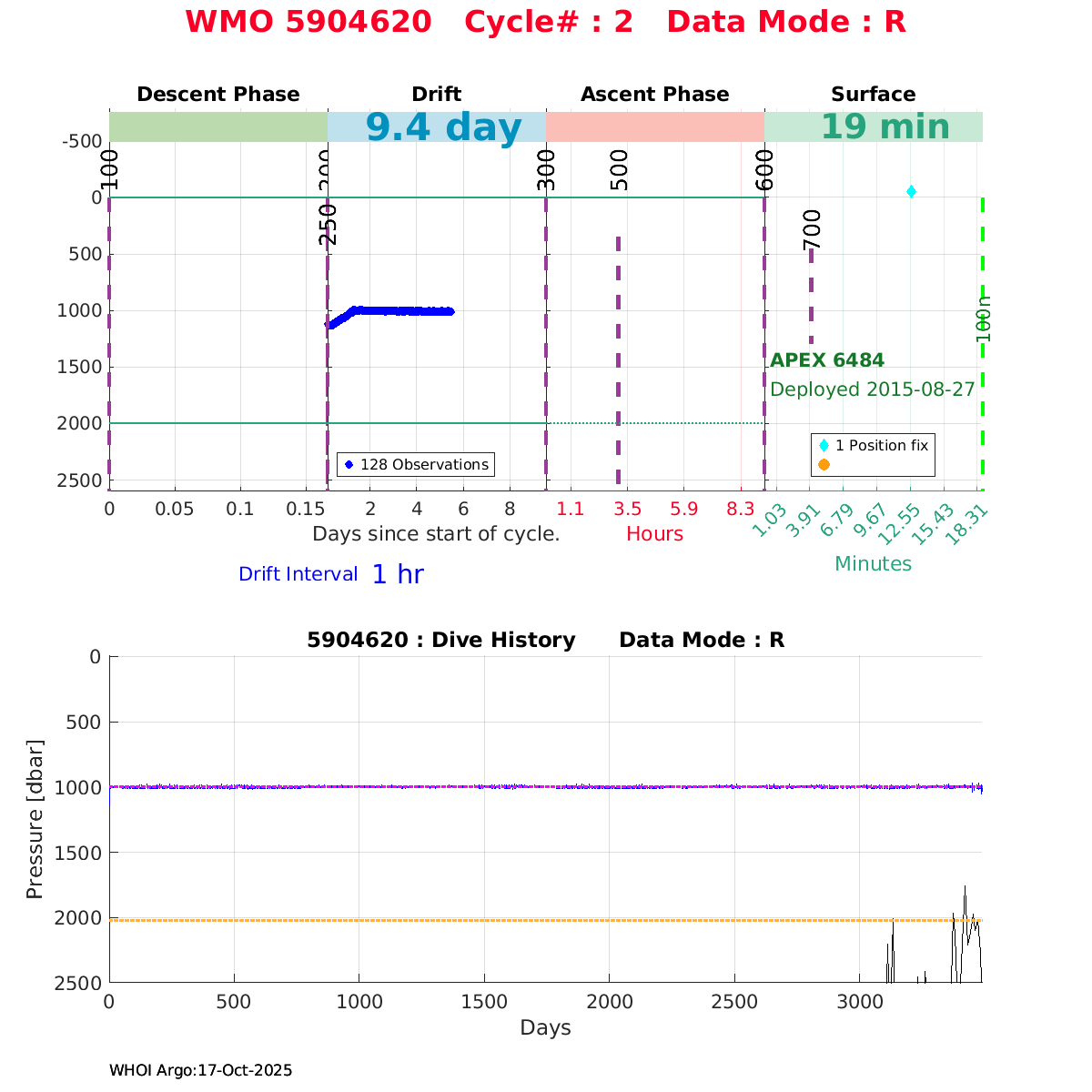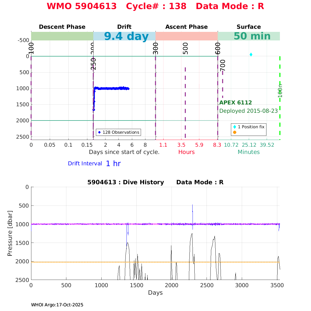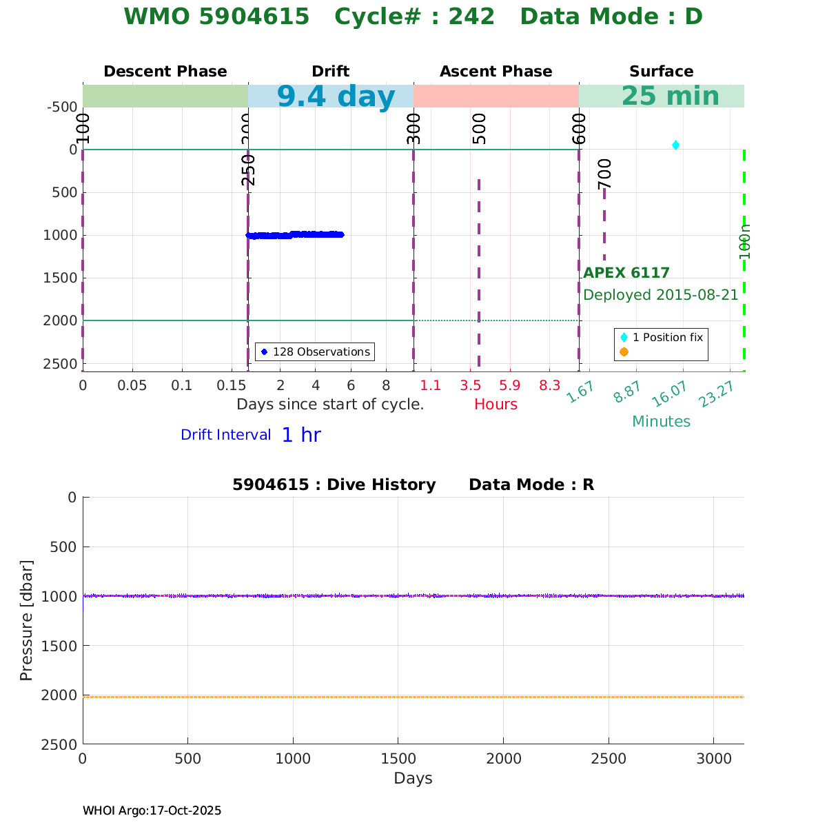 | WMO: #5904615 DAC: aoml PI: STEPHEN RISER APEX: #6117 SBE41CP: #4127 DRUCK_2900PSIA: #3412692 Altimeter Comparison (IFREMER) EuroArgo Link | ![]() |