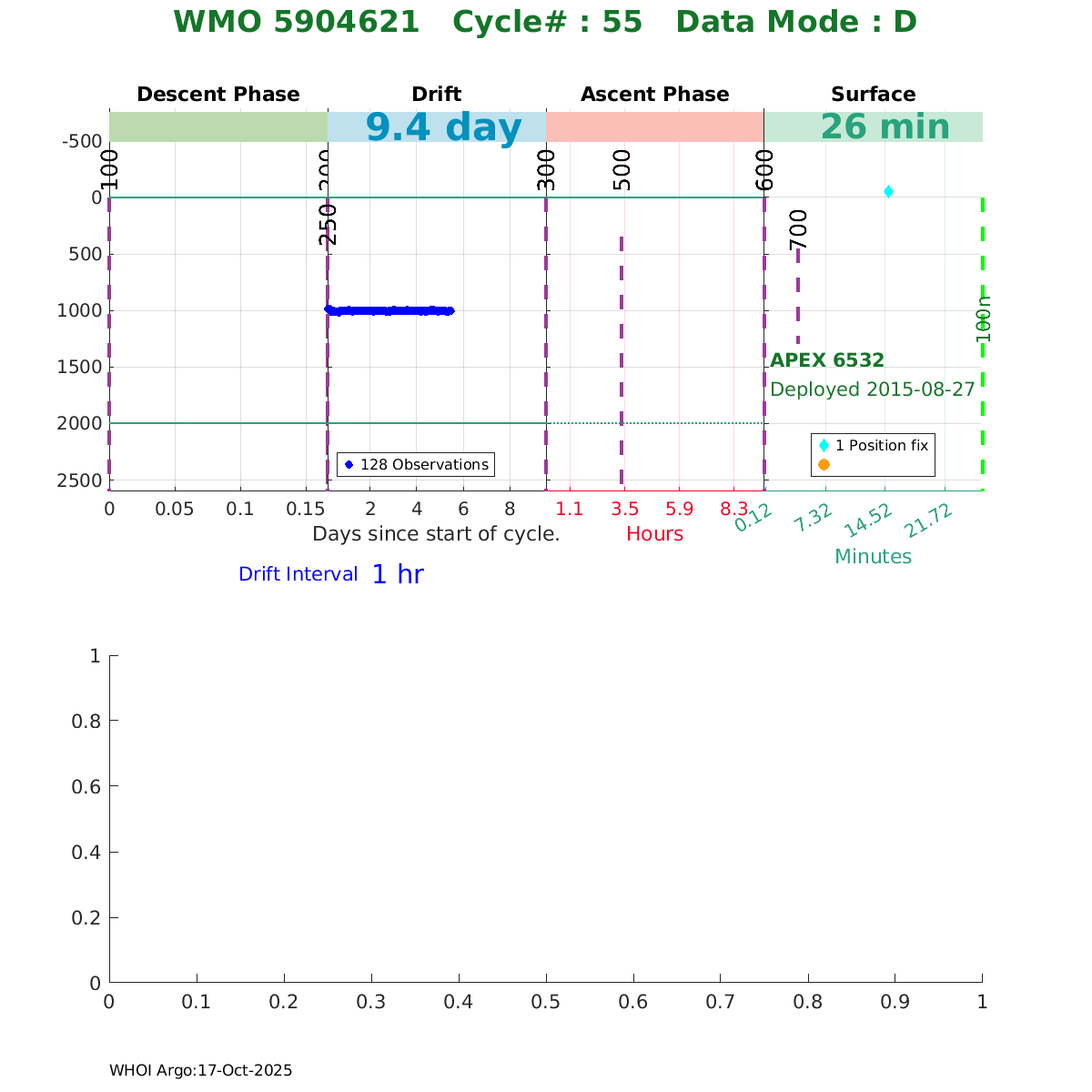 | WMO: #5902421 DAC: aoml PI: Dean ROEMMICH SOLO_II: #8408 KISTLER_2900PSIA: #4629843 SBE41CP: #6822 Altimeter Comparison (IFREMER) EuroArgo Link | ![]() |