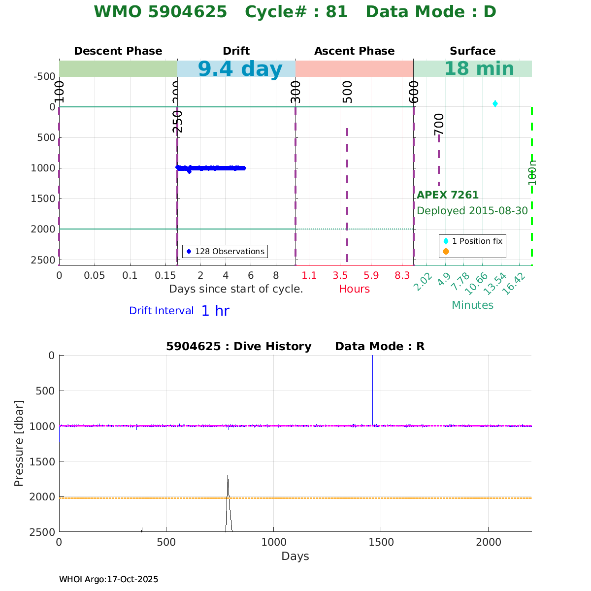 | WMO: #5904625 DAC: aoml PI: STEPHEN RISER APEX: #7261 SBE41CP: #5701 DRUCK_2900PSIA: #3881766 Altimeter Comparison (IFREMER) EuroArgo Link | ![]() |