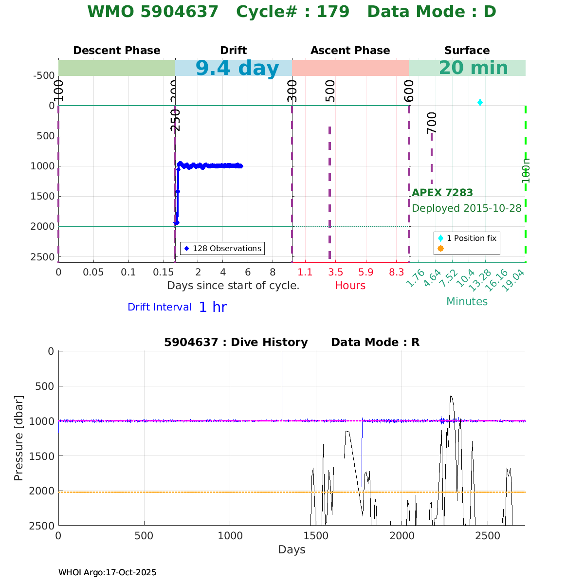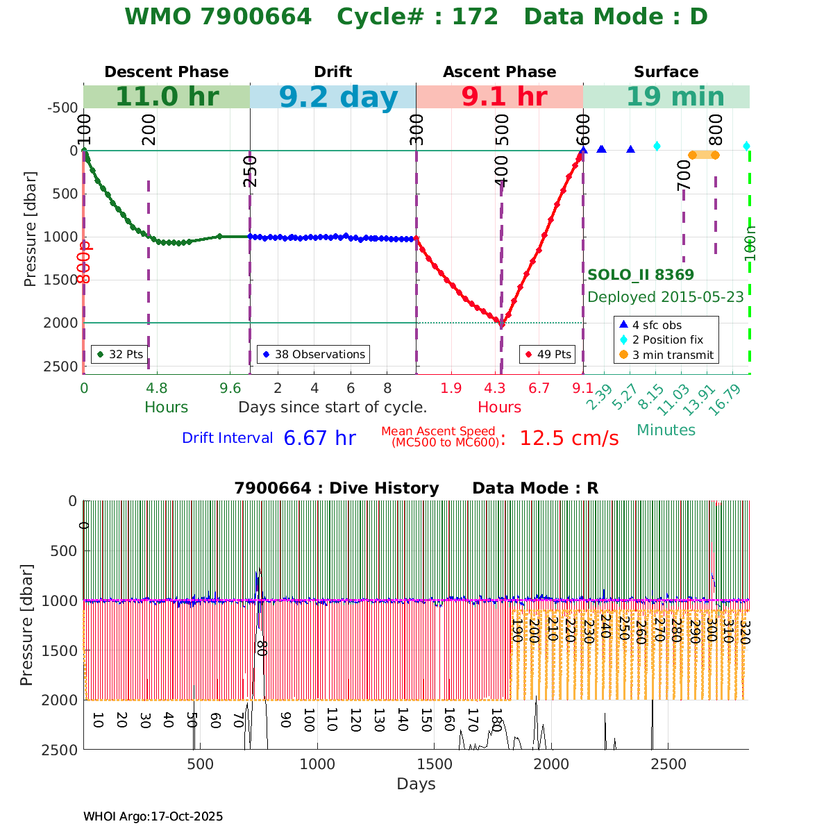 | WMO: #7900664 DAC: aoml PI: Dean ROEMMICH SOLO_II: #8369 DRUCK_2900PSIA: #3797235 SBE41CP: #5803 Altimeter Comparison (IFREMER) EuroArgo Link | ![]() |