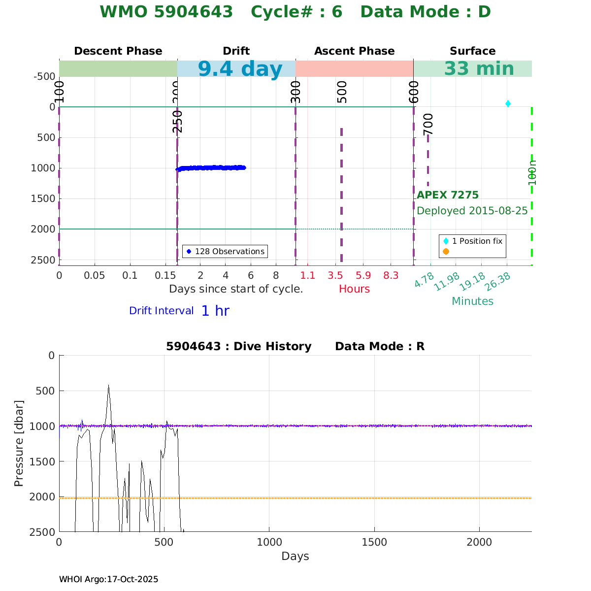 | WMO: #5904643 DAC: aoml PI: STEPHEN RISER APEX: #7275 SBE41CP: #5706 DRUCK_2900PSIA: #3868240 Altimeter Comparison (IFREMER) EuroArgo Link | ![]() |