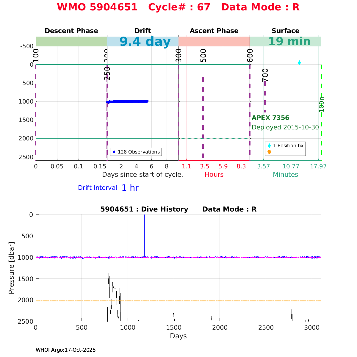 | WMO: #5904651 DAC: aoml PI: STEPHEN RISER APEX: #7356 SBE41CP: #6401 DRUCK_2900PSIA: #4149498 Altimeter Comparison (IFREMER) EuroArgo Link | ![]() |