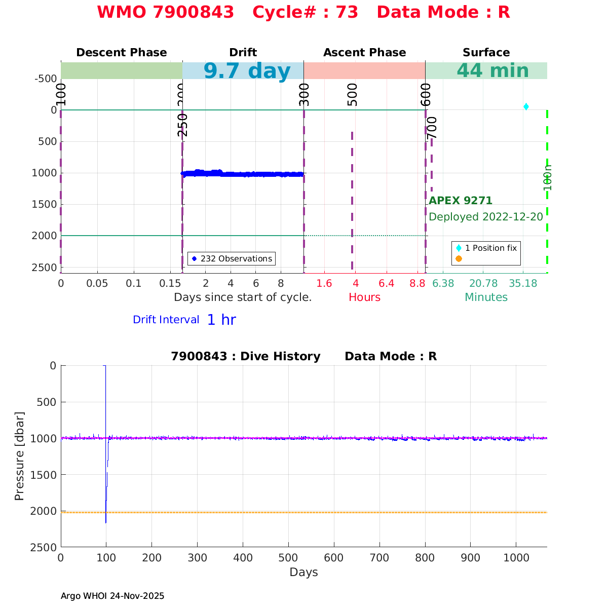 | WMO: #7900846 DAC: aoml PI: STEPHEN RISER APEX: #9243 SBE41CP: #13278 DRUCK_2900PSIA: #11585509 Altimeter Comparison (IFREMER) EuroArgo Link | ![]() |