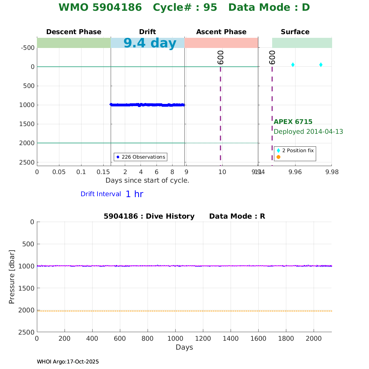 | WMO: #5904474 DAC: aoml PI: STEPHEN RISER, KENNETH JOHNSON APEX: #6844 SBE41CP: #5599 DRUCK_2900PSIA: #3868230 AANDERAA_OPTODE_4330: #1687 ISUS: #0205 DURA: #0205 ECO_FLBB_AP2: #3646 Altimeter Comparison (IFREMER) EuroArgo Link | ![]() |