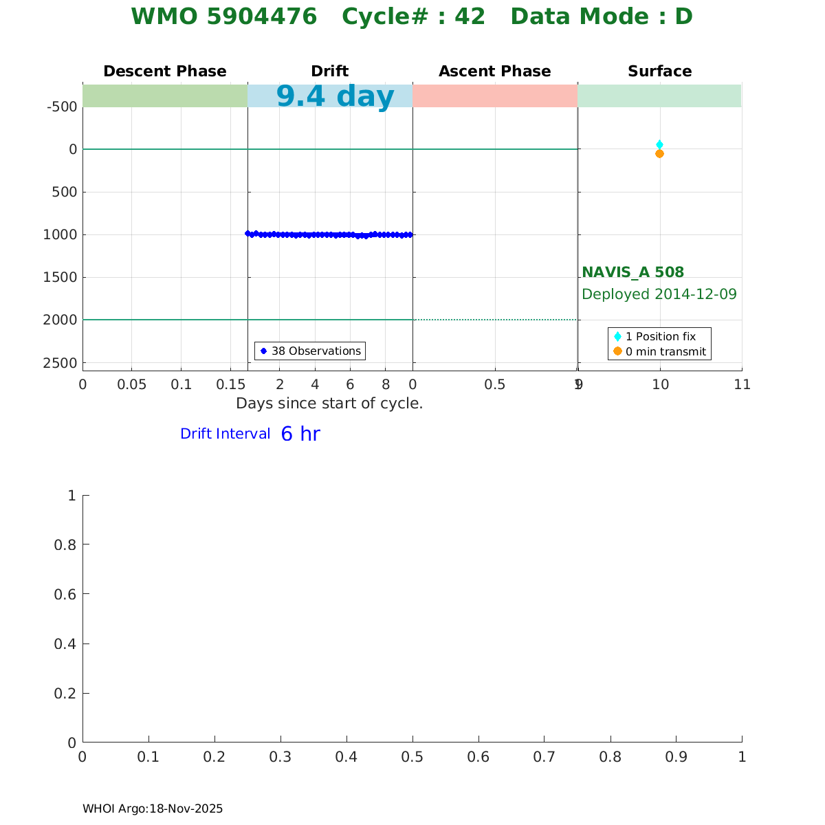 | WMO: #5904478 DAC: aoml PI: STEPHEN RISER, KENNETH JOHNSON NAVIS_A: #511 SBE41CP: #6269 DRUCK_2900PSIA: #4149501 SBE63_OPTODE: #0838 SUNA: #0501 DURA: #0075 MCOMS_FLBBCD: #0034 Altimeter Comparison (IFREMER) EuroArgo Link | n/a | n/a | ![]() |