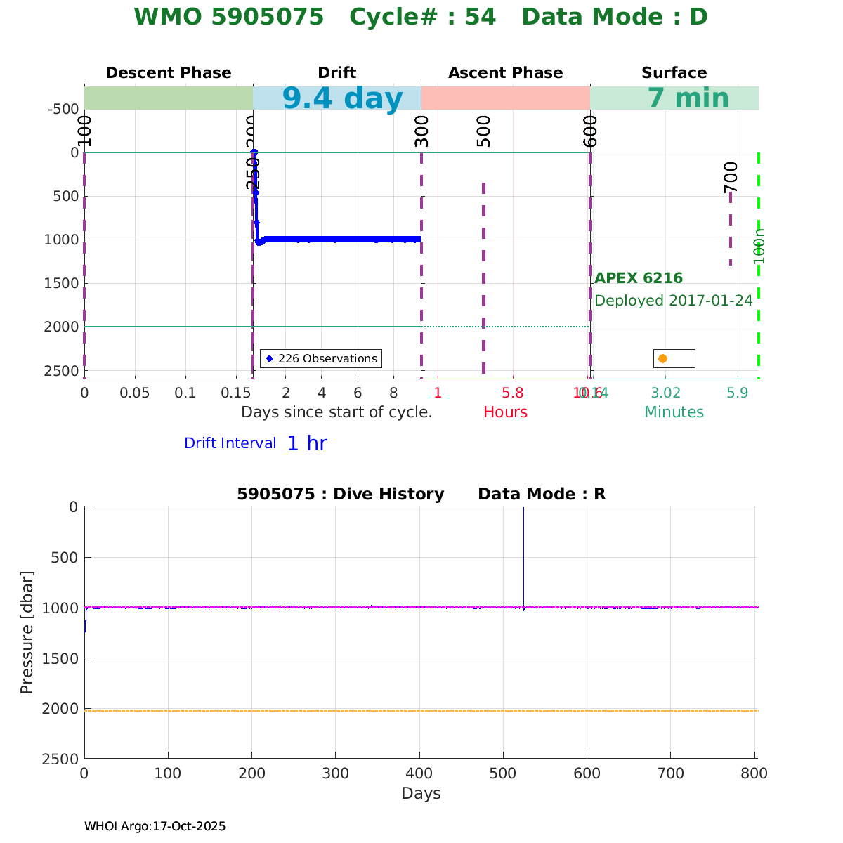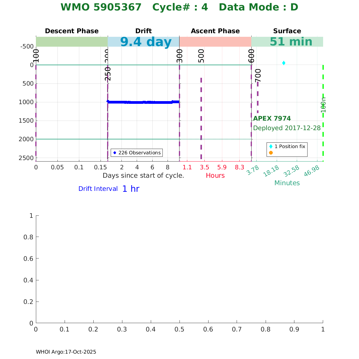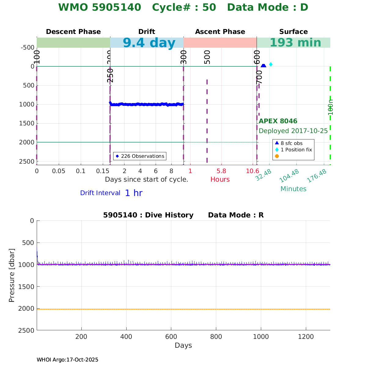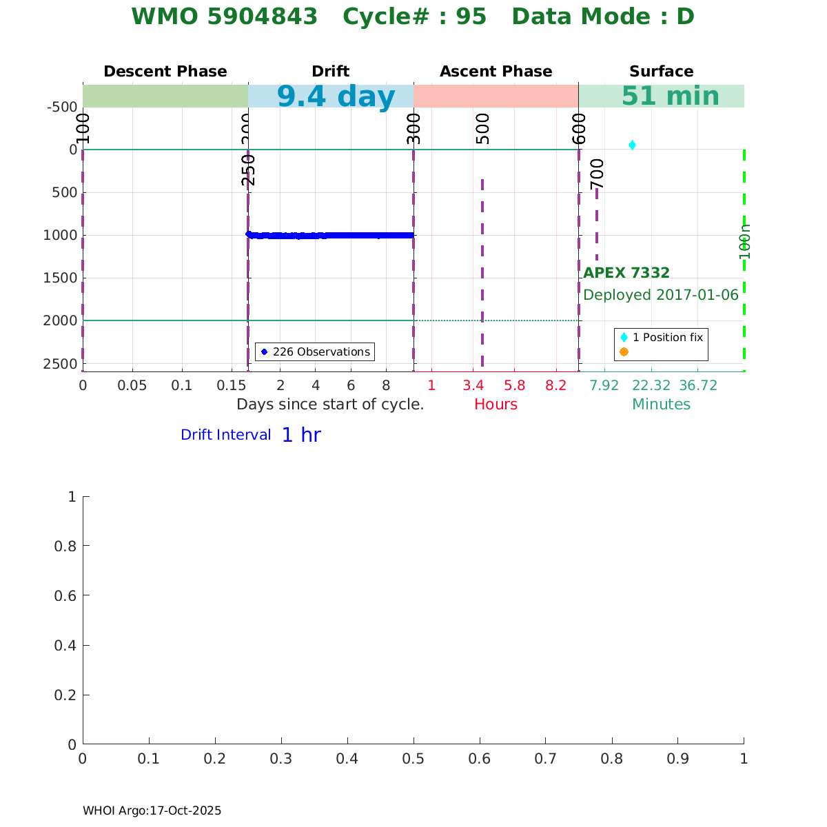 | WMO: #5905074 DAC: aoml PI: STEPHEN RISER, KENNETH JOHNSON NAVIS_A: #693 SBE41CP: #8572 DRUCK_2900PSIA: #10300884 SBE63_OPTODE: #1379 SUNA: #0823 SEAFET: #0142 MCOMS_FLBBCD: #0141 Altimeter Comparison (IFREMER) EuroArgo Link | n/a | n/a | ![]() |