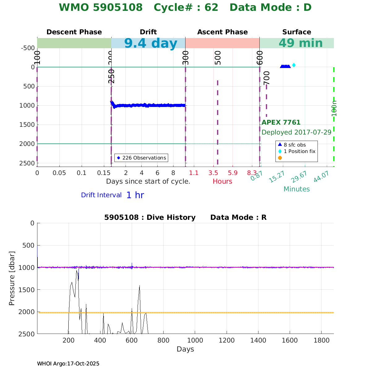 | WMO: #5905108 DAC: aoml PI: STEPHEN RISER, KENNETH JOHNSON APEX: #7761 SBE41CP: #7947 DRUCK_2900PSIA: #10202381 AANDERAA_OPTODE_4330: #2453 ISUS: #0762 DURA: #0762 ECO_FLBB_AP2: #4351 Altimeter Comparison (IFREMER) EuroArgo Link | ![]() |