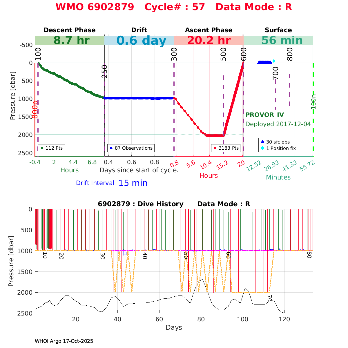 | WMO: #6902879 DAC: coriolis PI: Herve CLAUSTRE PROVOR_IV: # DRUCK_2900PSIA: #10673956 SBE41CP: #9948 AANDERAA_OPTODE_4330: #2238 SATLANTIC_OCR504_ICSW: #40363 ECO_FLBBCD: #3796 SUNA_V2: #225 SEAFET: #SBELOVPH00004 Altimeter Comparison (IFREMER) EuroArgo Link | ![]() |