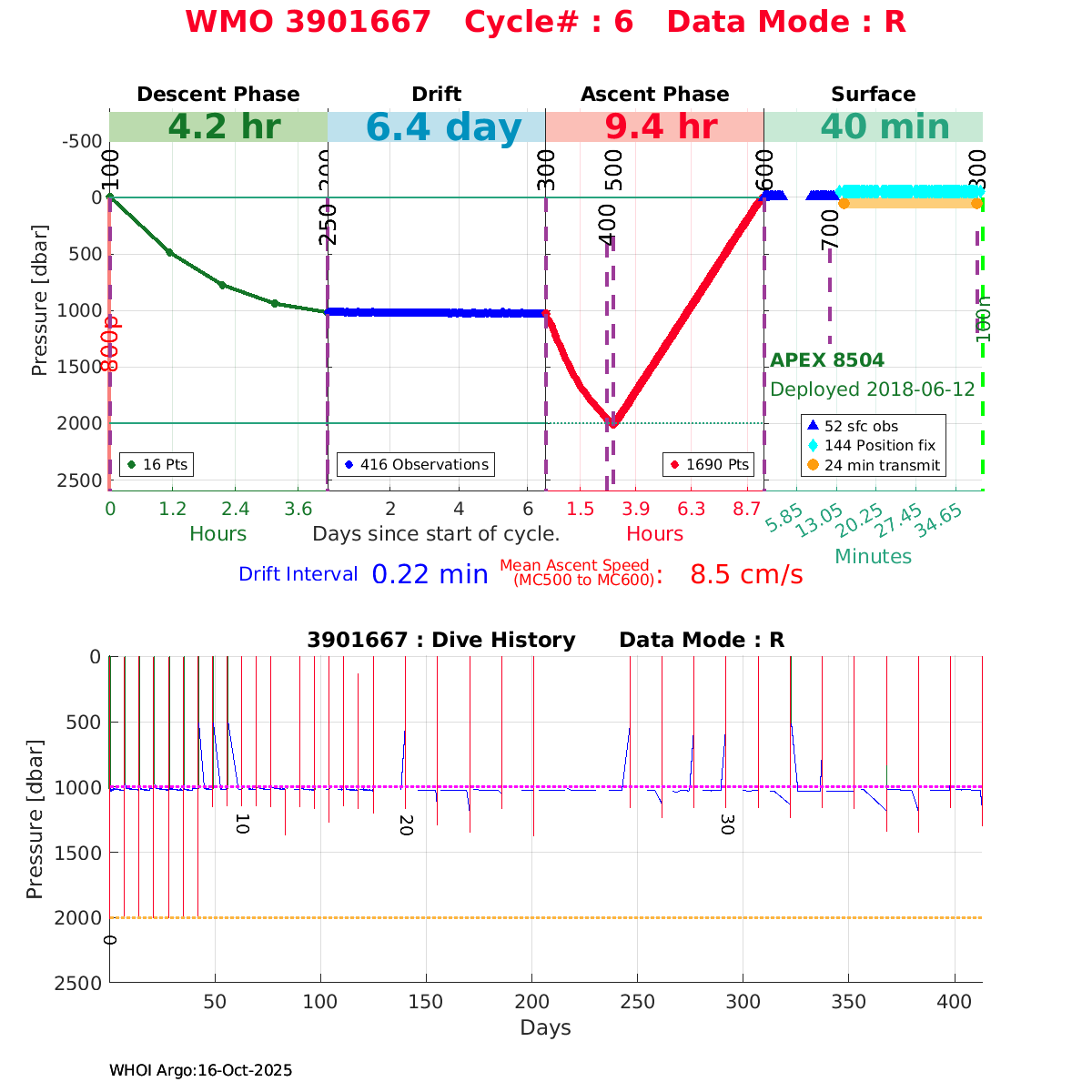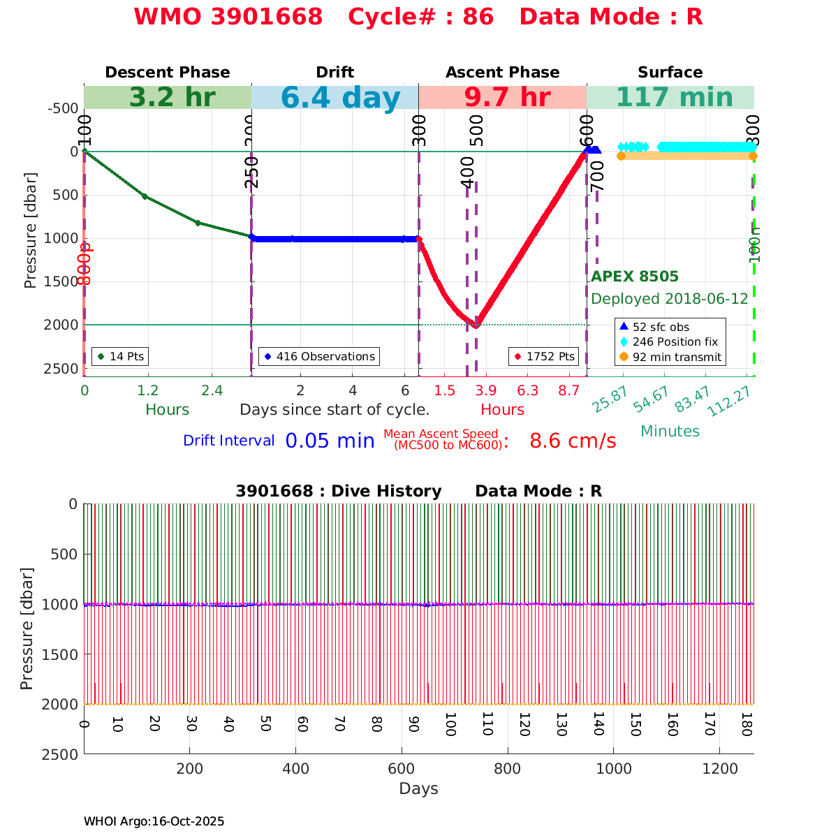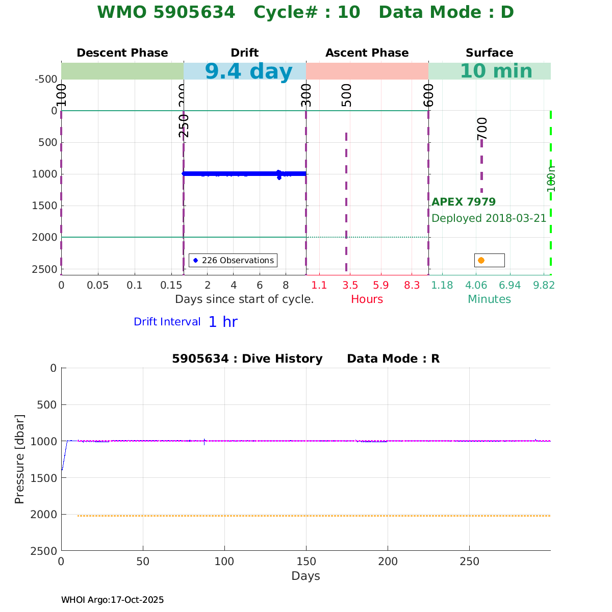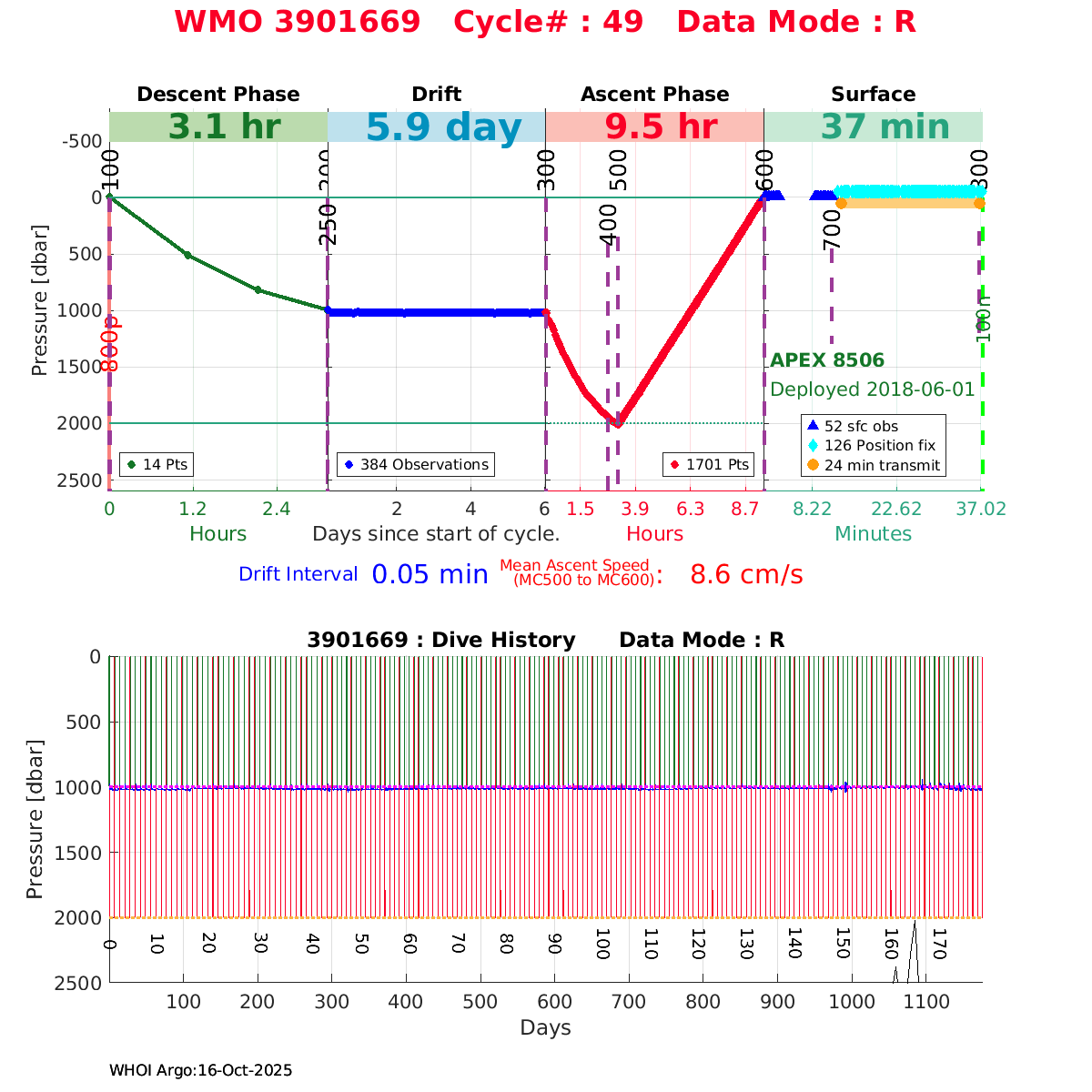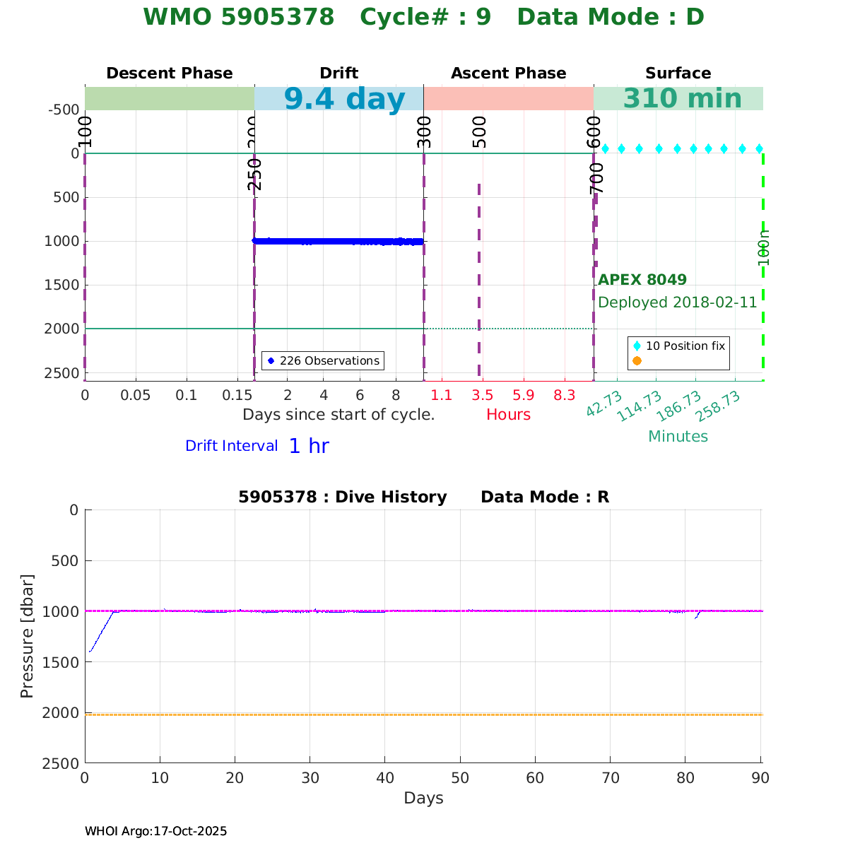 | WMO: #5906001 DAC: aoml PI: STEPHEN RISER, KENNETH JOHNSON APEX: #8359 SBE41CP: #10450 DRUCK_2900PSIA: #10820445 AANDERAA_OPTODE_4330: #2861 ISUS: #0810 DURA: #0810 ECO_FLBB_AP2: #4685 Altimeter Comparison (IFREMER) EuroArgo Link | ![]() |