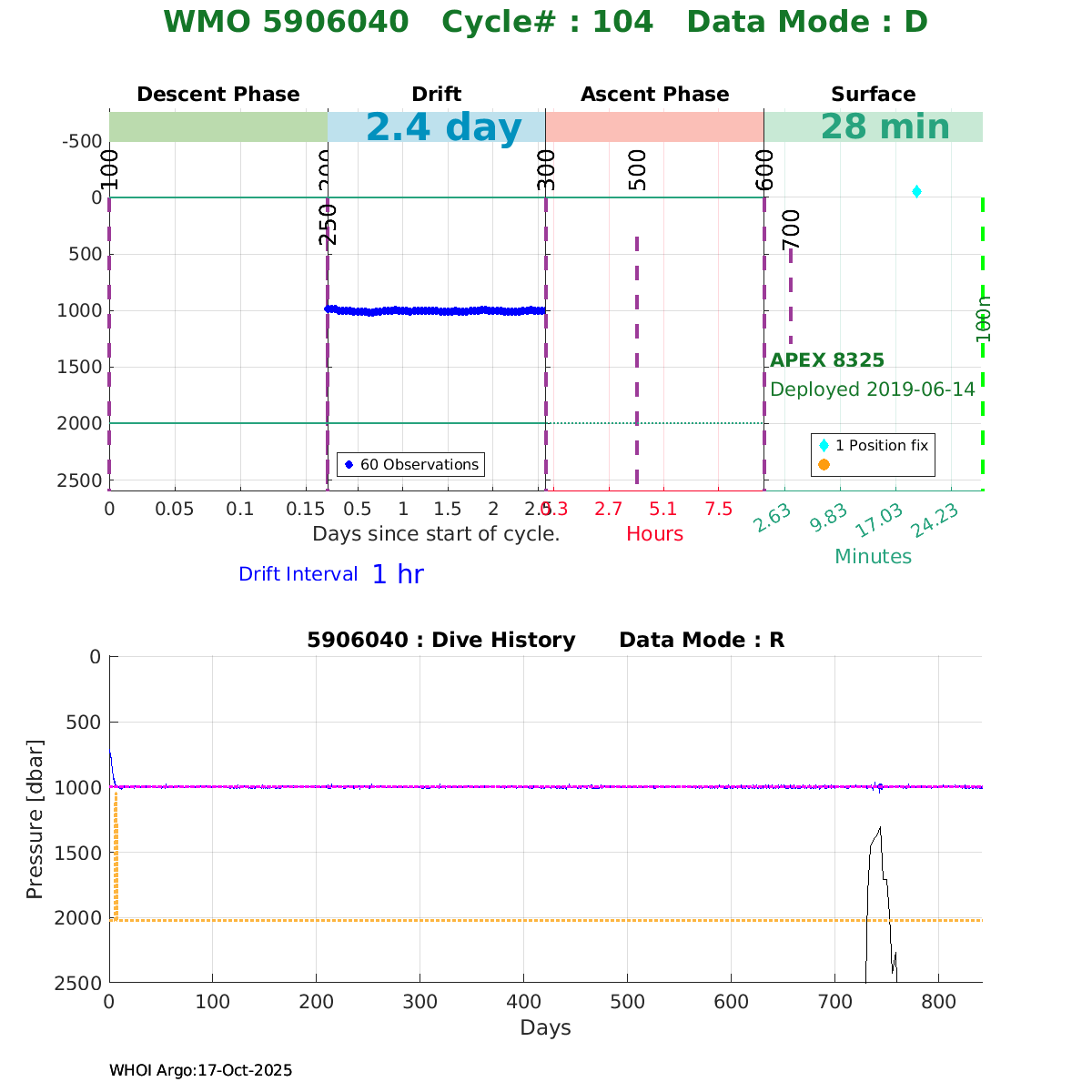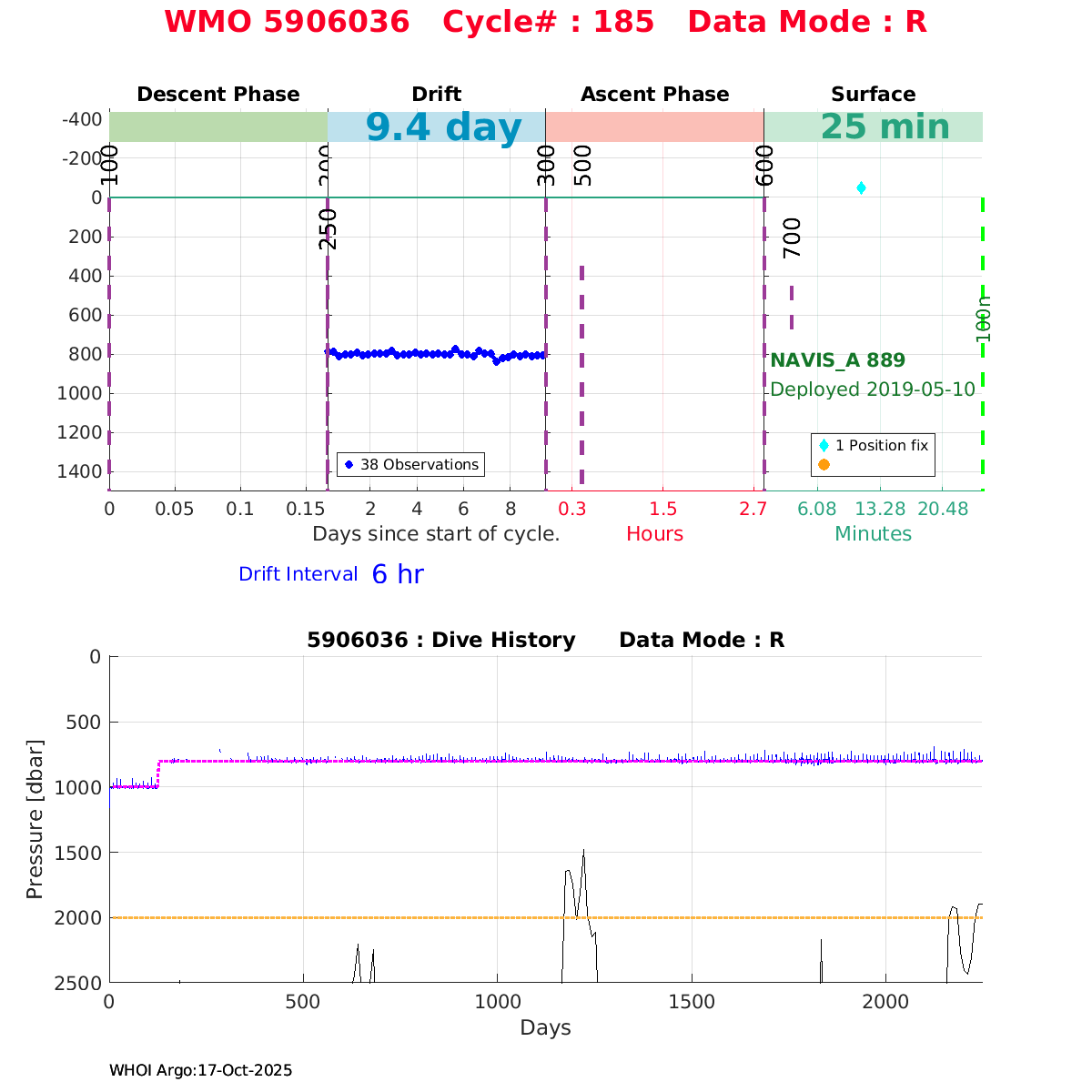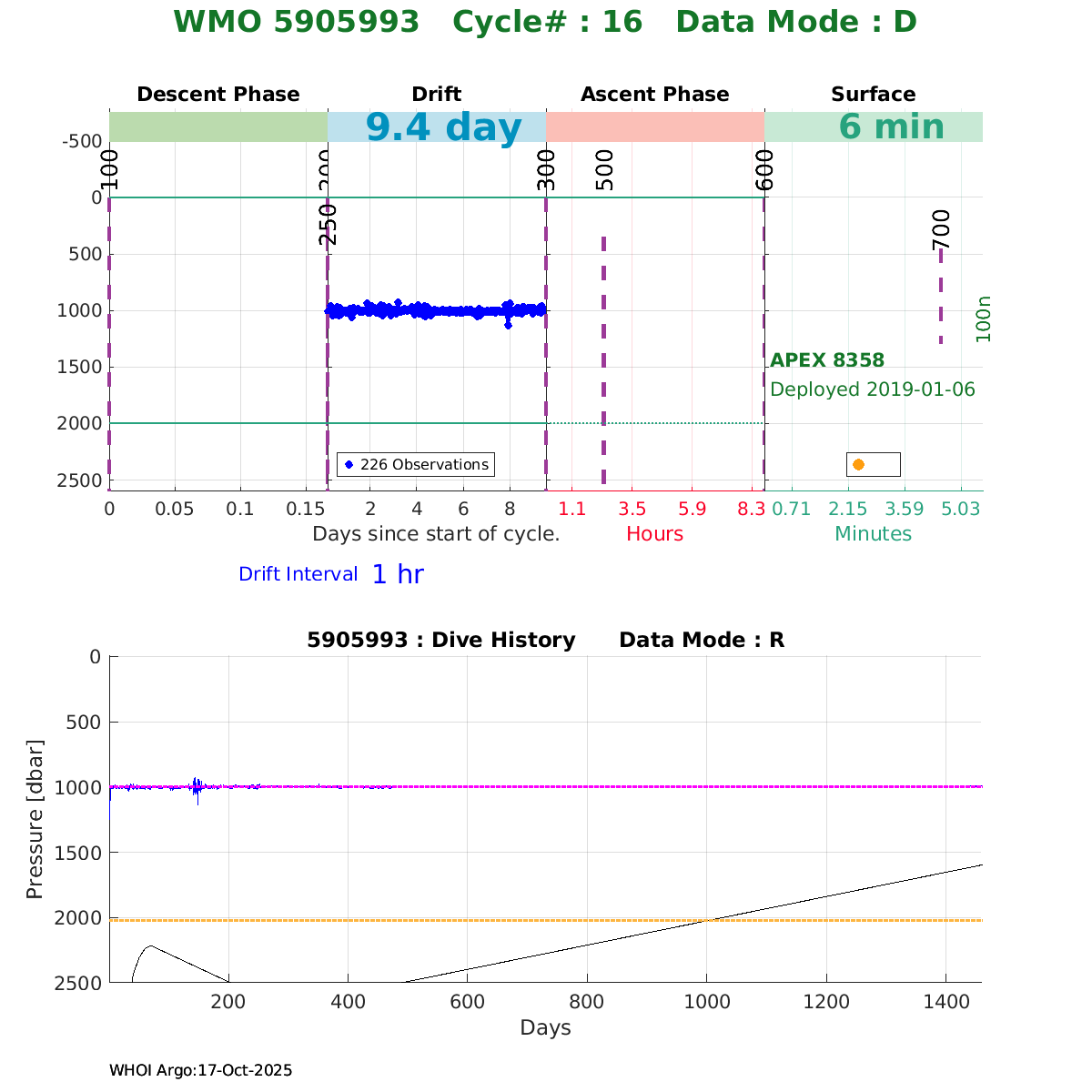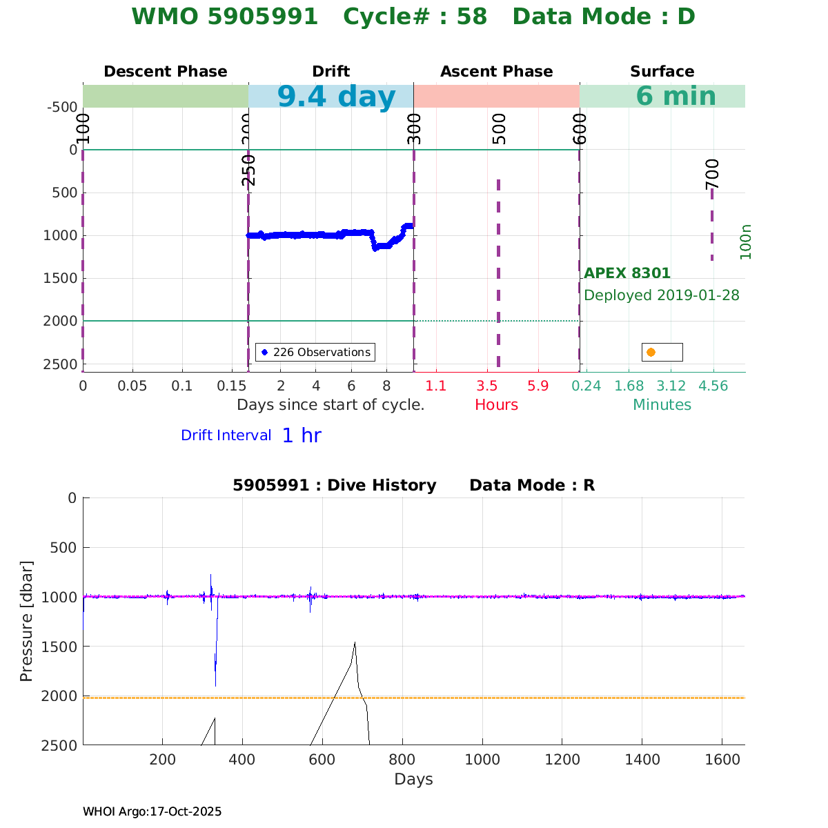 | WMO: #5906033 DAC: aoml PI: STEPHEN RISER, KENNETH JOHNSON APEX: #8360 SBE41CP: #10364 DRUCK_2900PSIA: #10783123 AANDERAA_OPTODE_4330: #2862 ISUS: #0817 DURA: #0817 ECO_FLBB_AP2: #4686 Altimeter Comparison (IFREMER) EuroArgo Link | ![]() |