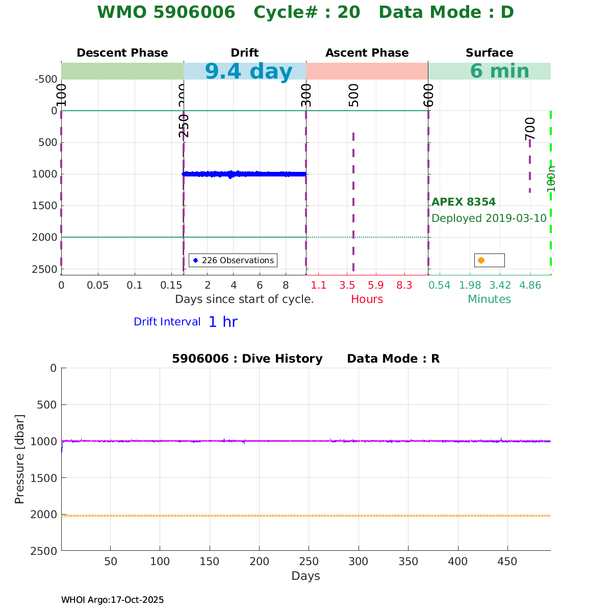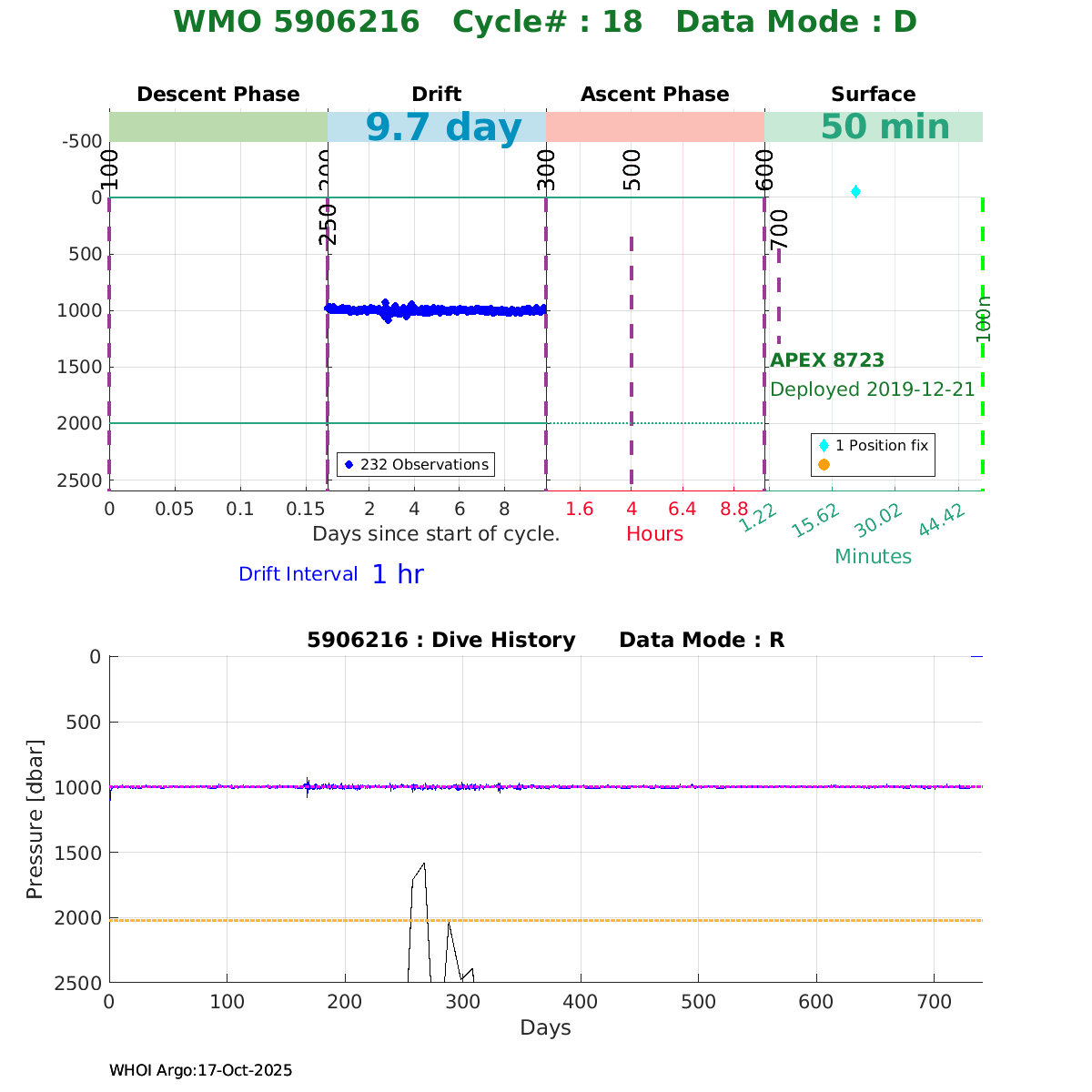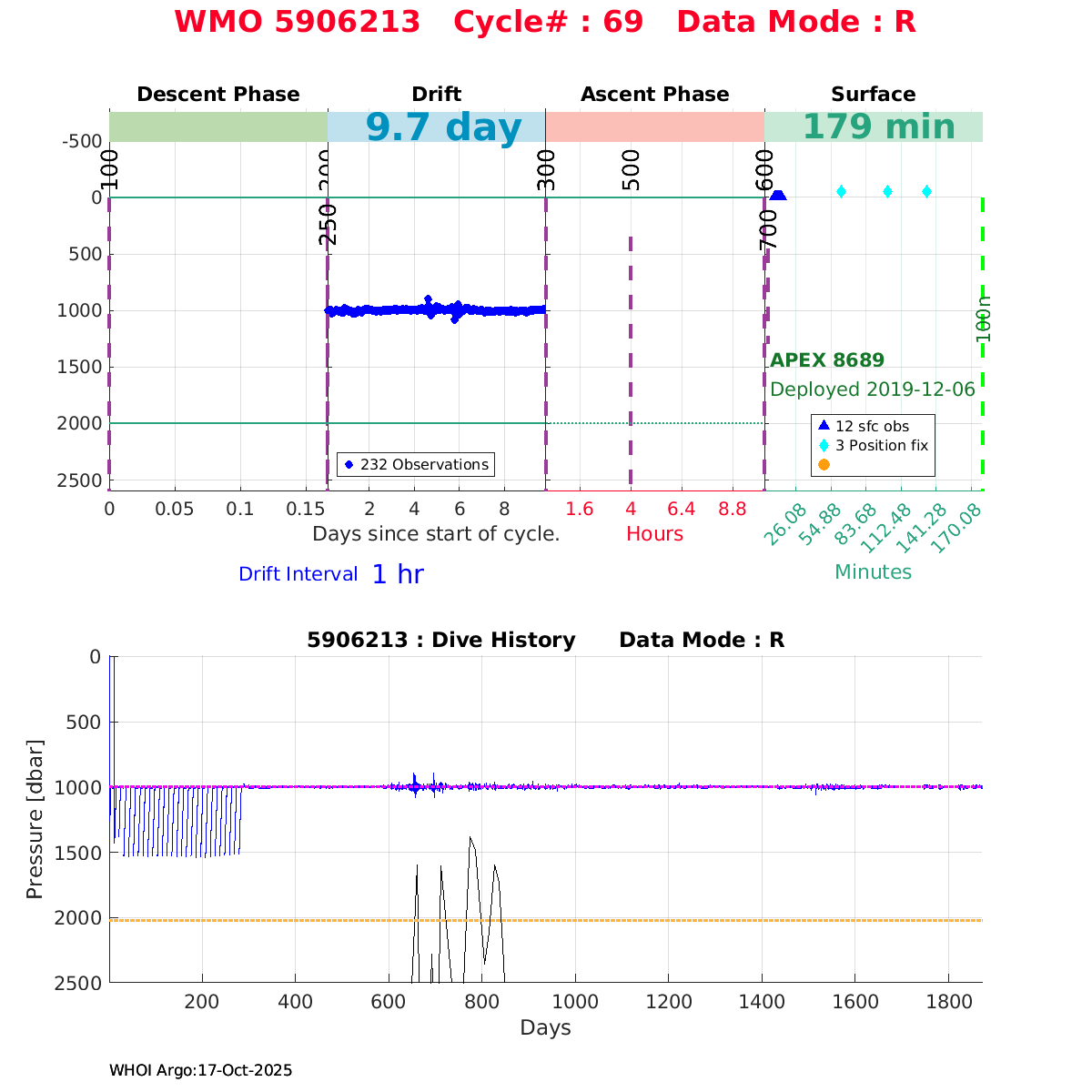 | WMO: #5906214 DAC: aoml PI: STEPHEN RISER/KEN JOHNSON APEX: #8721 SBE41CP: #11764 DRUCK_2900PSIA: #11073511 AANDERAA_OPTODE_4330: #3091 ISUS: #0853 DURA: #0853 ECO_FLBB_AP2: #5514 Altimeter Comparison (IFREMER) EuroArgo Link | ![]() |