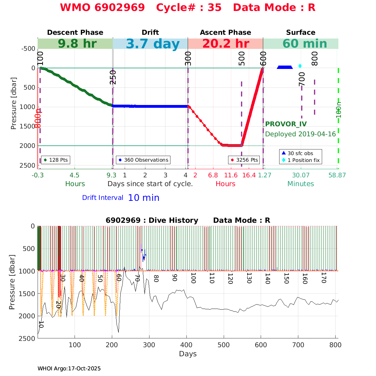 | WMO: #6902969 DAC: coriolis PI: Herve CLAUSTRE PROVOR_IV: # DRUCK_2900PSIA: #10673956 SBE41CP: #9948 AANDERAA_OPTODE_4330: #2238 SATLANTIC_OCR504_ICSW: #40363 ECO_FLBBCD: #3796 SUNA_V2: #225 SEAFET: #C28 Altimeter Comparison (IFREMER) EuroArgo Link | ![]() |