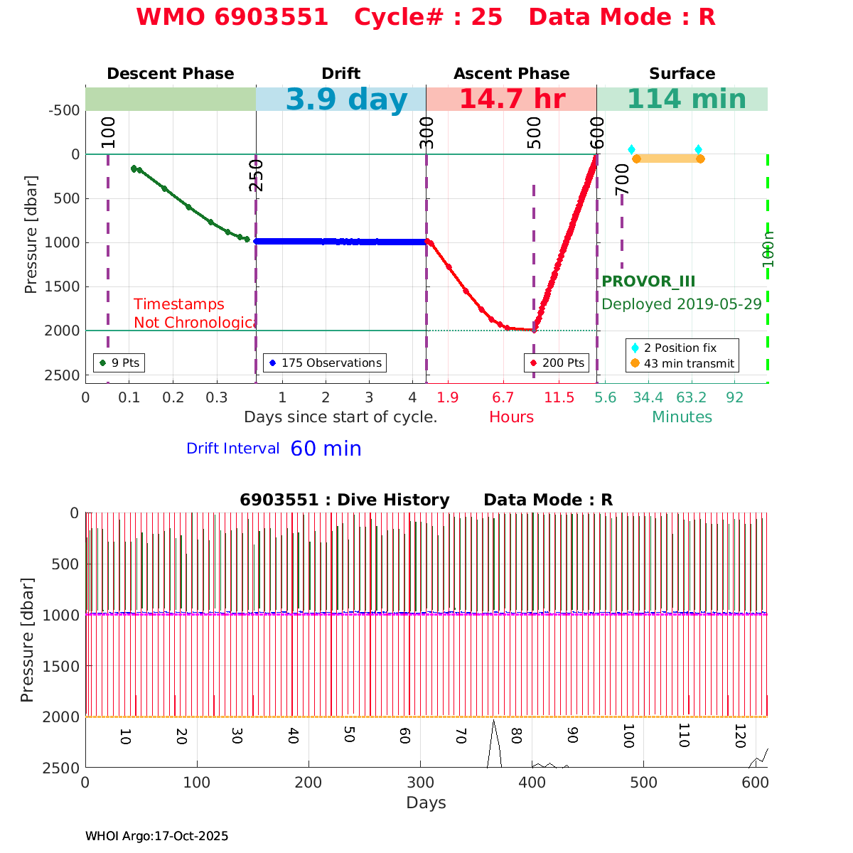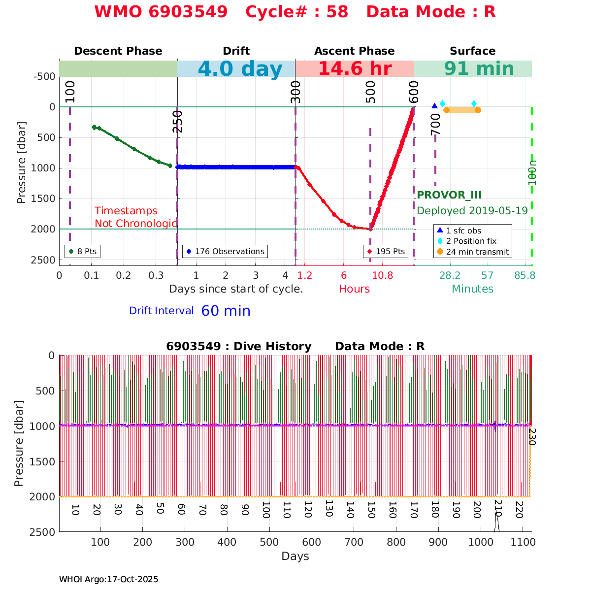 | WMO: #6903549 DAC: coriolis PI: Kjell Arne MORK PROVOR_III: # DRUCK_2900PSIA: #10970102 SBE41CP: #11159 AANDERAA_OPTODE_4330: #2981 SATLANTIC_OCR504_ICSW: #40568 ECO_FLBBCD: #3314 SUNA_V2: #1203 SEAFET: #10266 Altimeter Comparison (IFREMER) EuroArgo Link | ![]() |