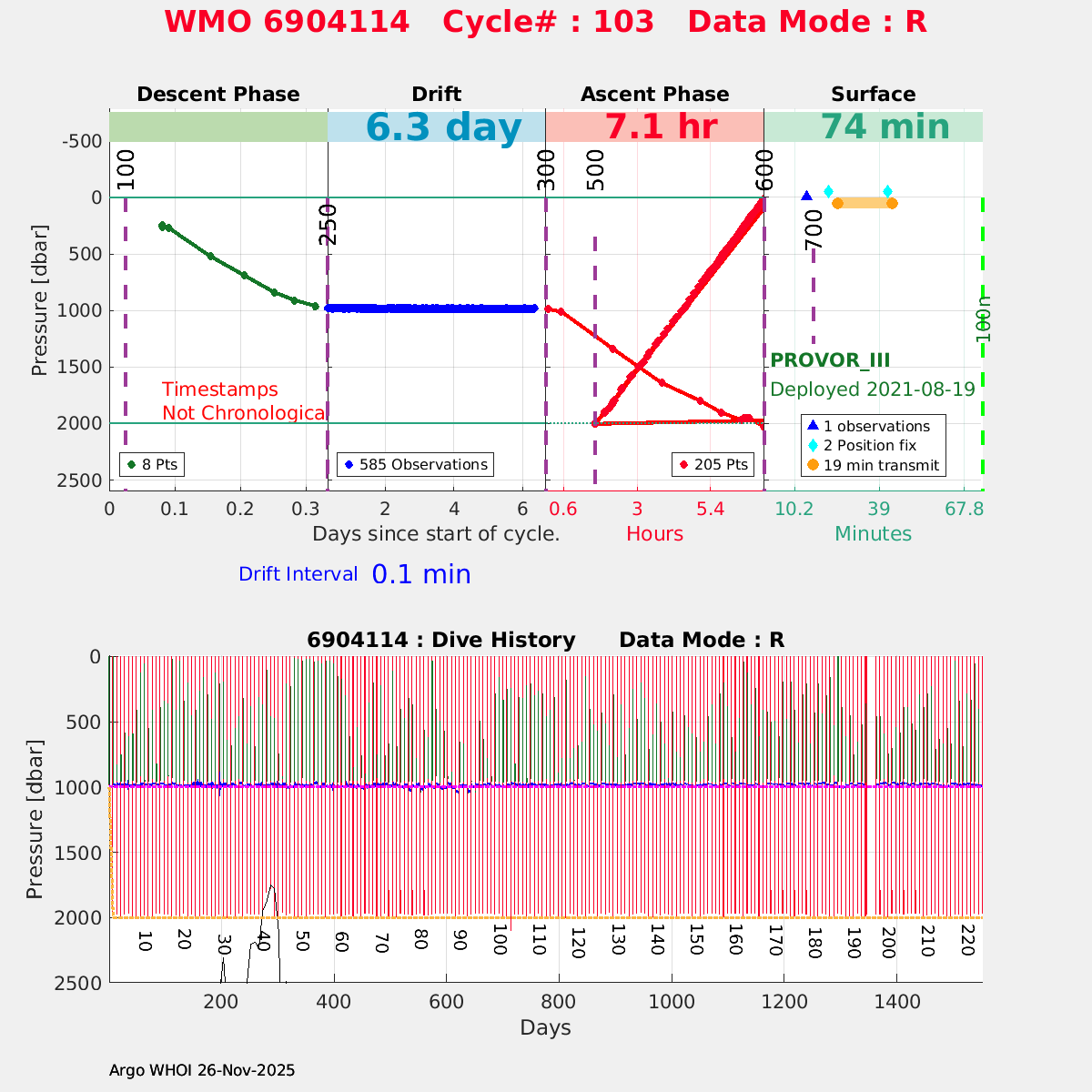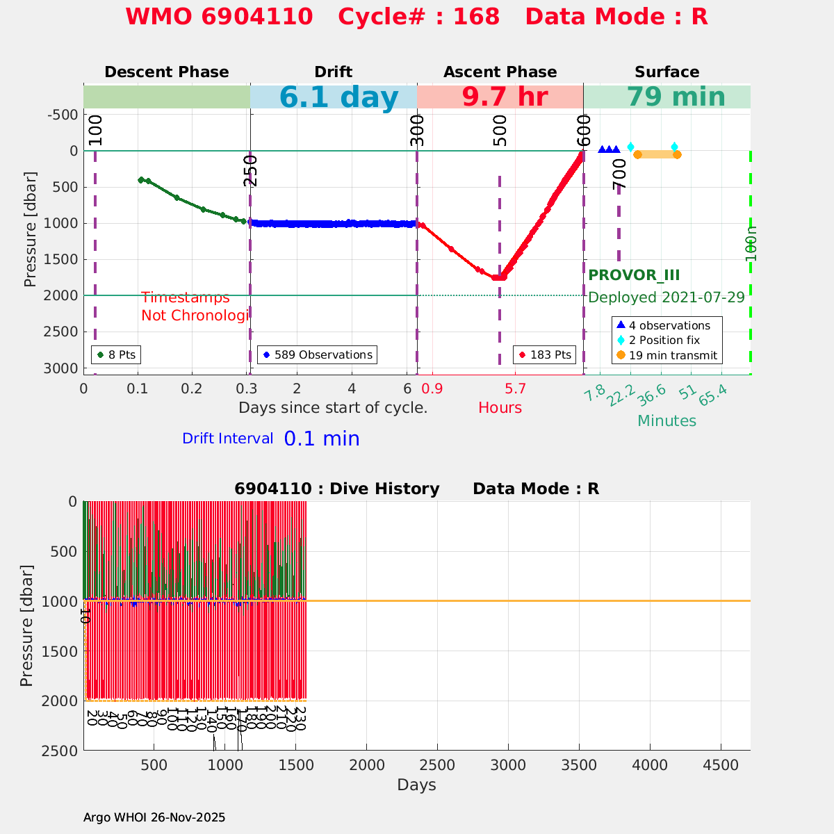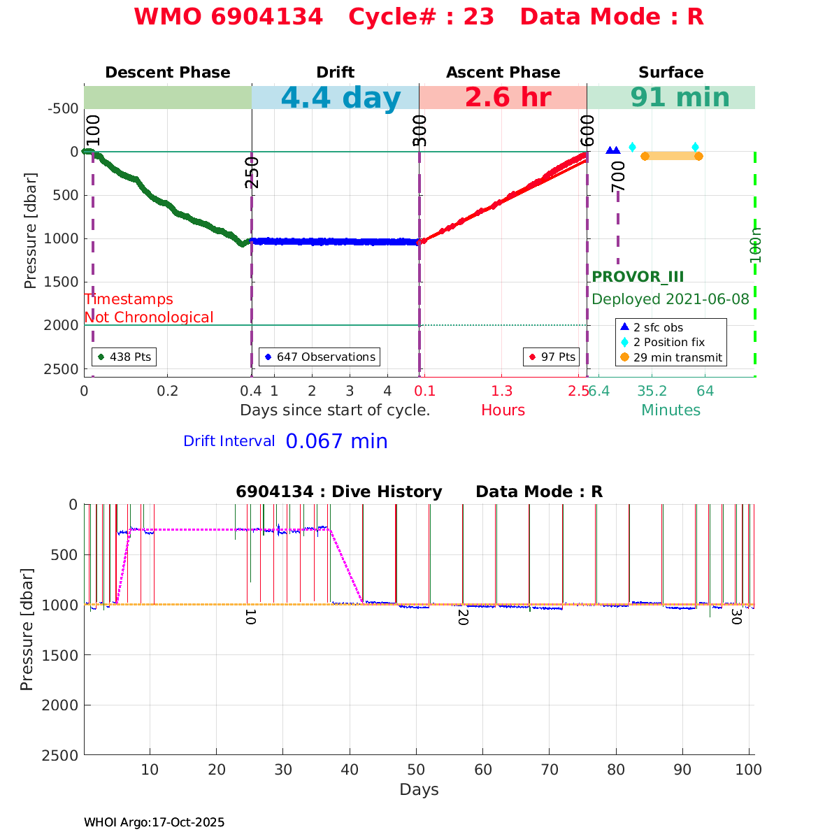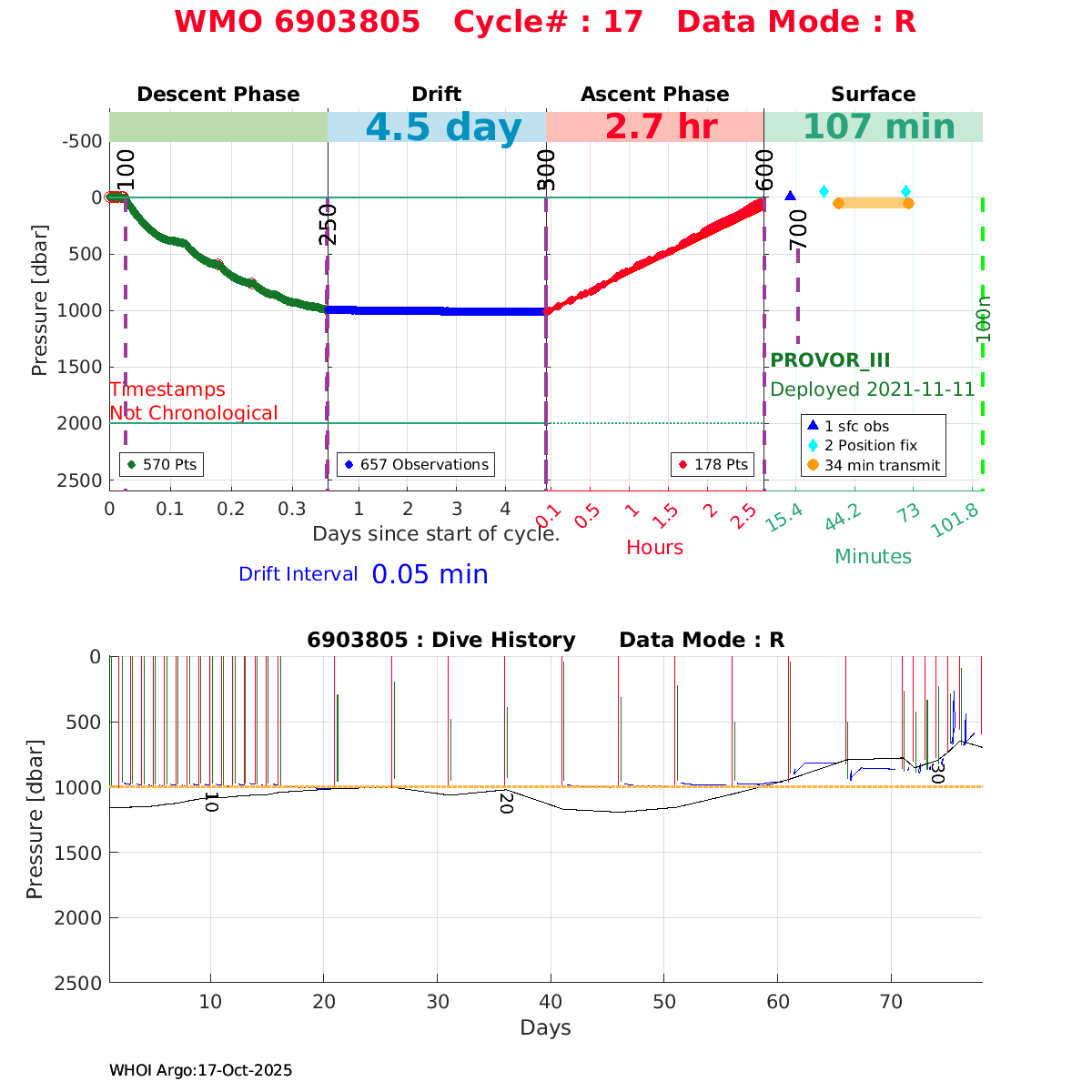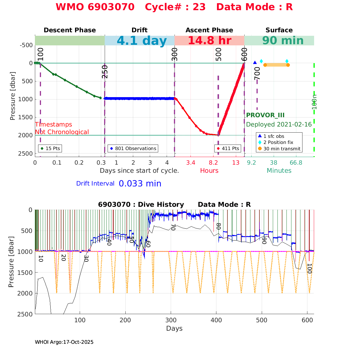 | WMO: #6903805 DAC: coriolis PI: Elena MAURI PROVOR_III: # DRUCK_2900PSIA: #11496676 SBE41CP: #12944 AANDERAA_OPTODE_4330: #3237 SATLANTIC_OCR504_ICSW: #2050 ECO_FLBBCD: #6089 SUNA_V2: #NTR-1446 SEAFET: #10581 Altimeter Comparison (IFREMER) EuroArgo Link | ![]() |