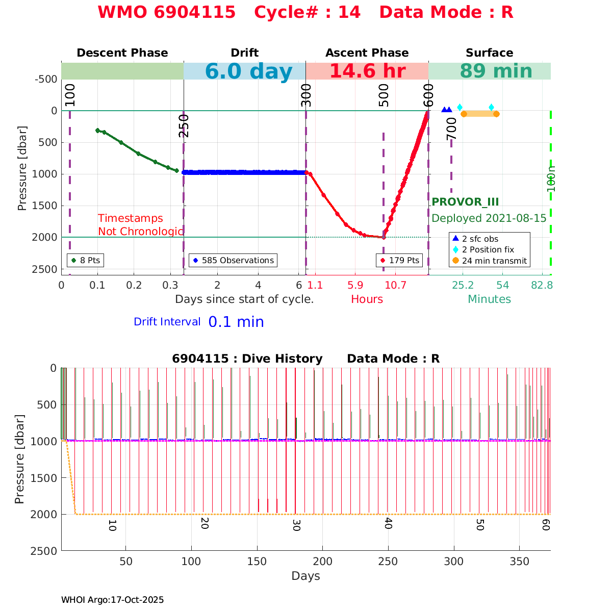 | WMO: #5906315 DAC: aoml PI: STEPHEN RISER/KEN JOHNSON APEX: #8690 SBE41CP: #12483 DRUCK_2900PSIA: #11413861 AANDERAA_OPTODE_4330: #3085 ISUS: #0892 DURA: #0892 ECO_FLBB_AP2: #5501 Altimeter Comparison (IFREMER) EuroArgo Link | ![]() |