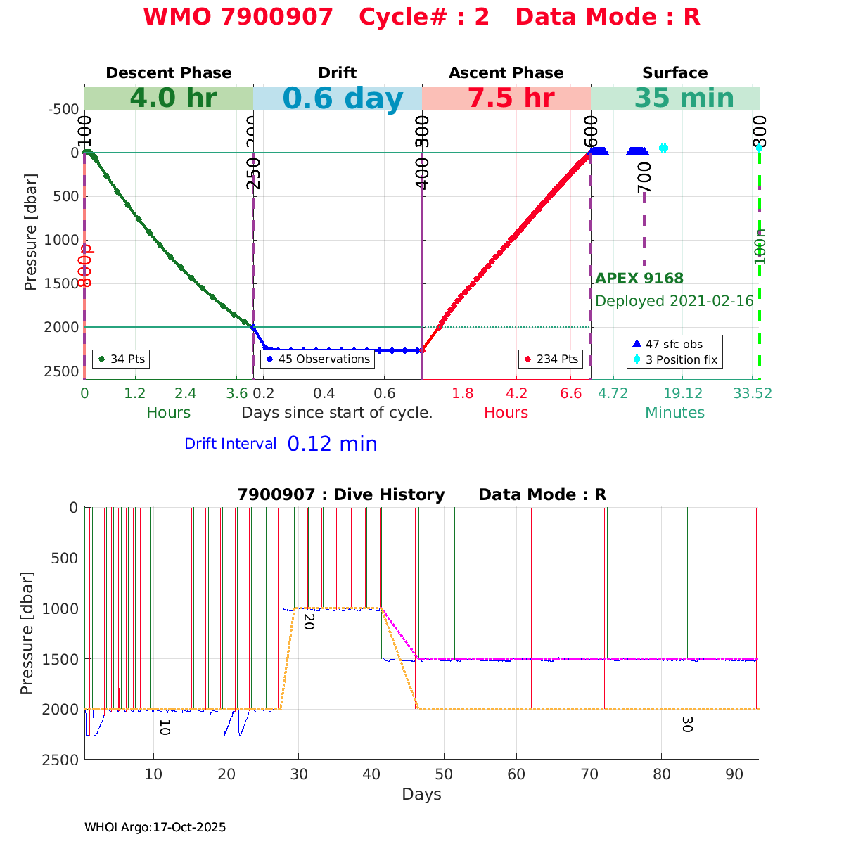 | WMO: #2903648 DAC: jma PI: JAMSTEC APEX: #9019 SBE41N_V5.3.4: #12477 ARO_FT: #0BLL001 SEAFET: #10471 Altimeter Comparison (IFREMER) EuroArgo Link | ![]() |