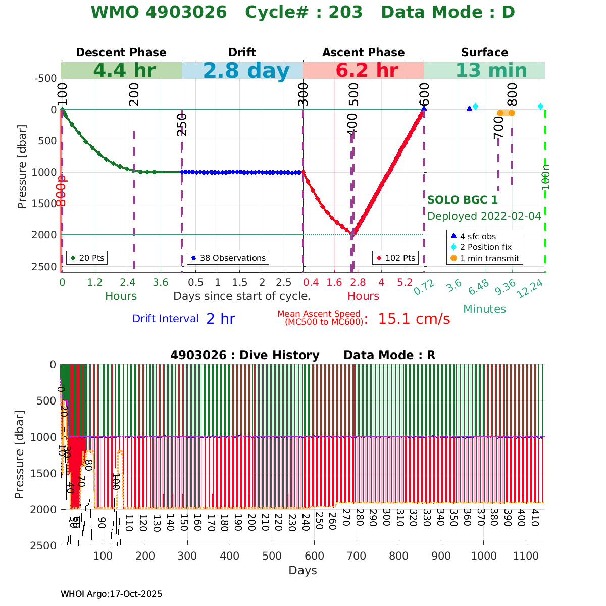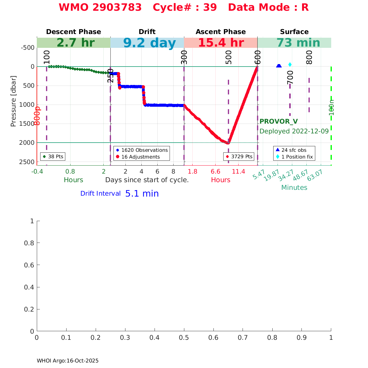 | WMO: #4903026 DAC: aoml PI: Sarah PURKEY SOLO BGC: #1 SBE41CP: #14319 SBE83_OPTODE: #9013 ECO_FLBBCD: #6610 SEAFET: #T54_p-comp SUNA_V2: #1515 OCR504_ICSW: #2155 Altimeter Comparison (IFREMER) EuroArgo Link | ![]() |