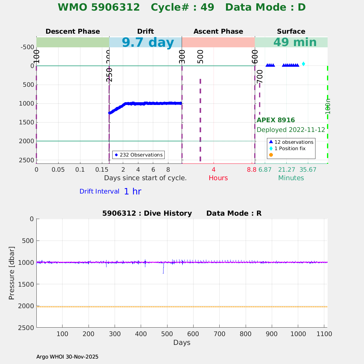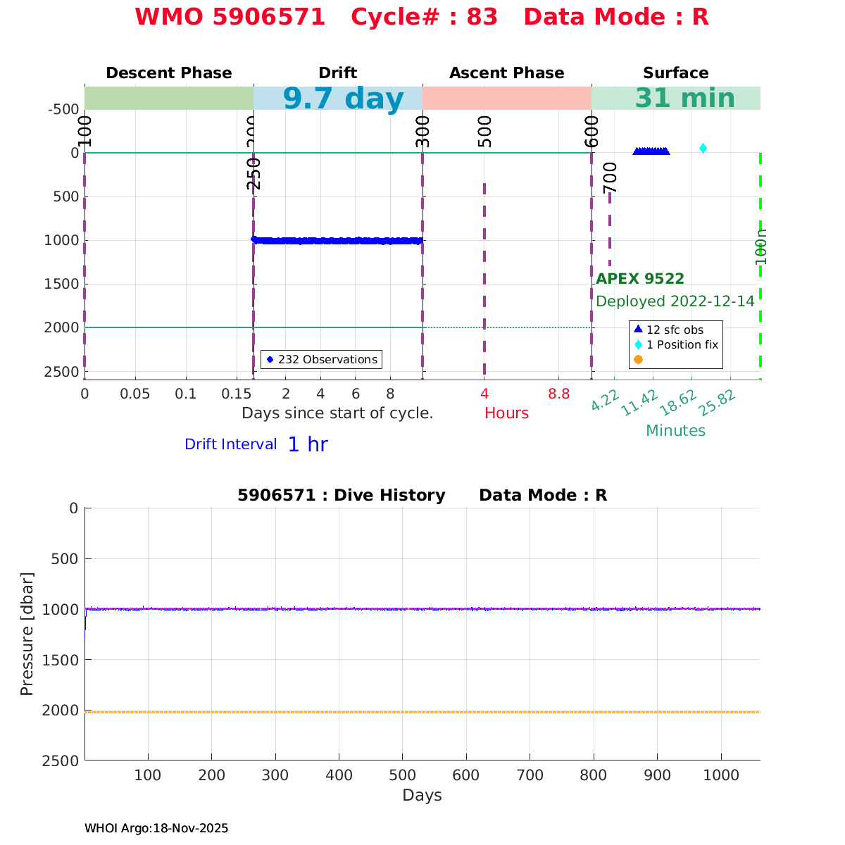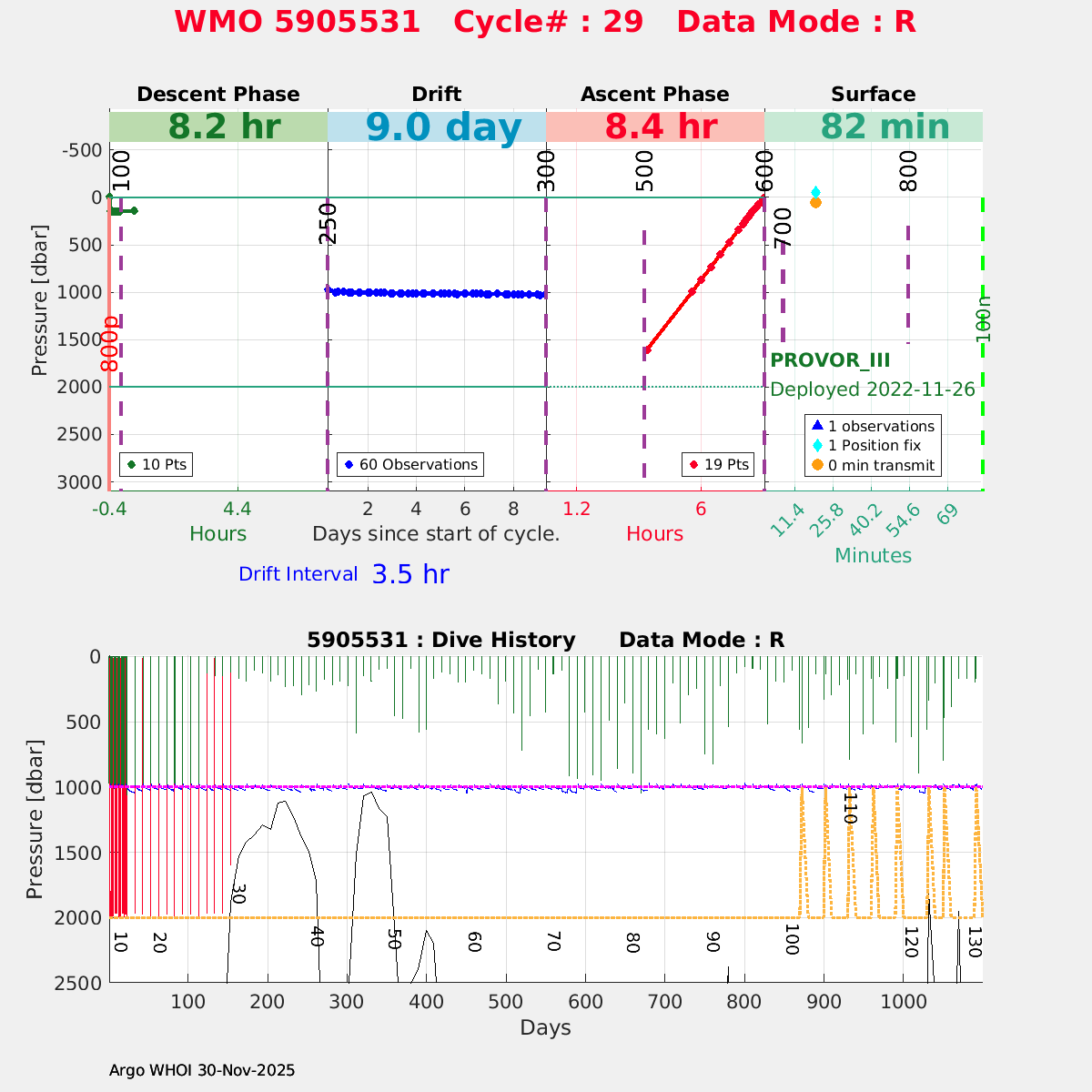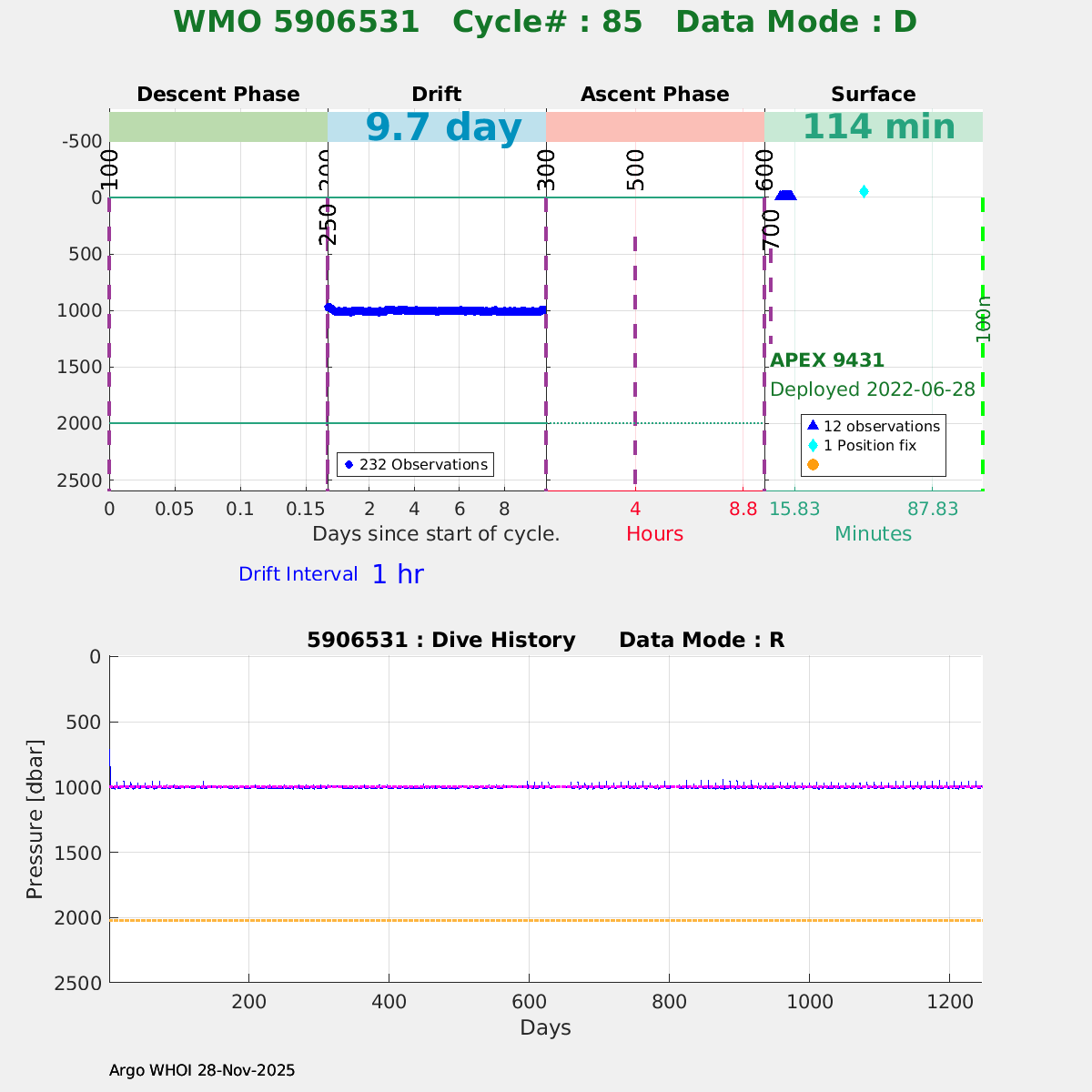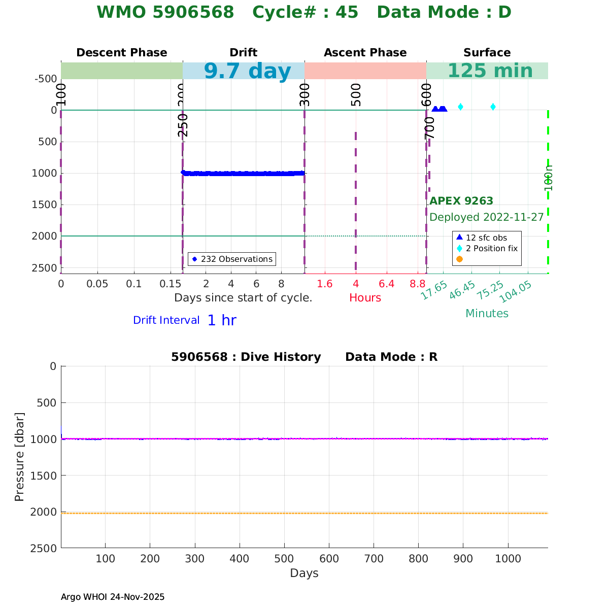 | WMO: #5906524 DAC: aoml PI: STEPHEN RISER/KEN JOHNSON APEX: #9248 SBE41CP: #13578 DRUCK_2900PSIA: #11564790 AANDERAA_OPTODE_4330: #3564 ISUS: #0927 SEAFET: #0927 ECO_FLBB_AP2: #6400 Altimeter Comparison (IFREMER) EuroArgo Link | ![]() |
