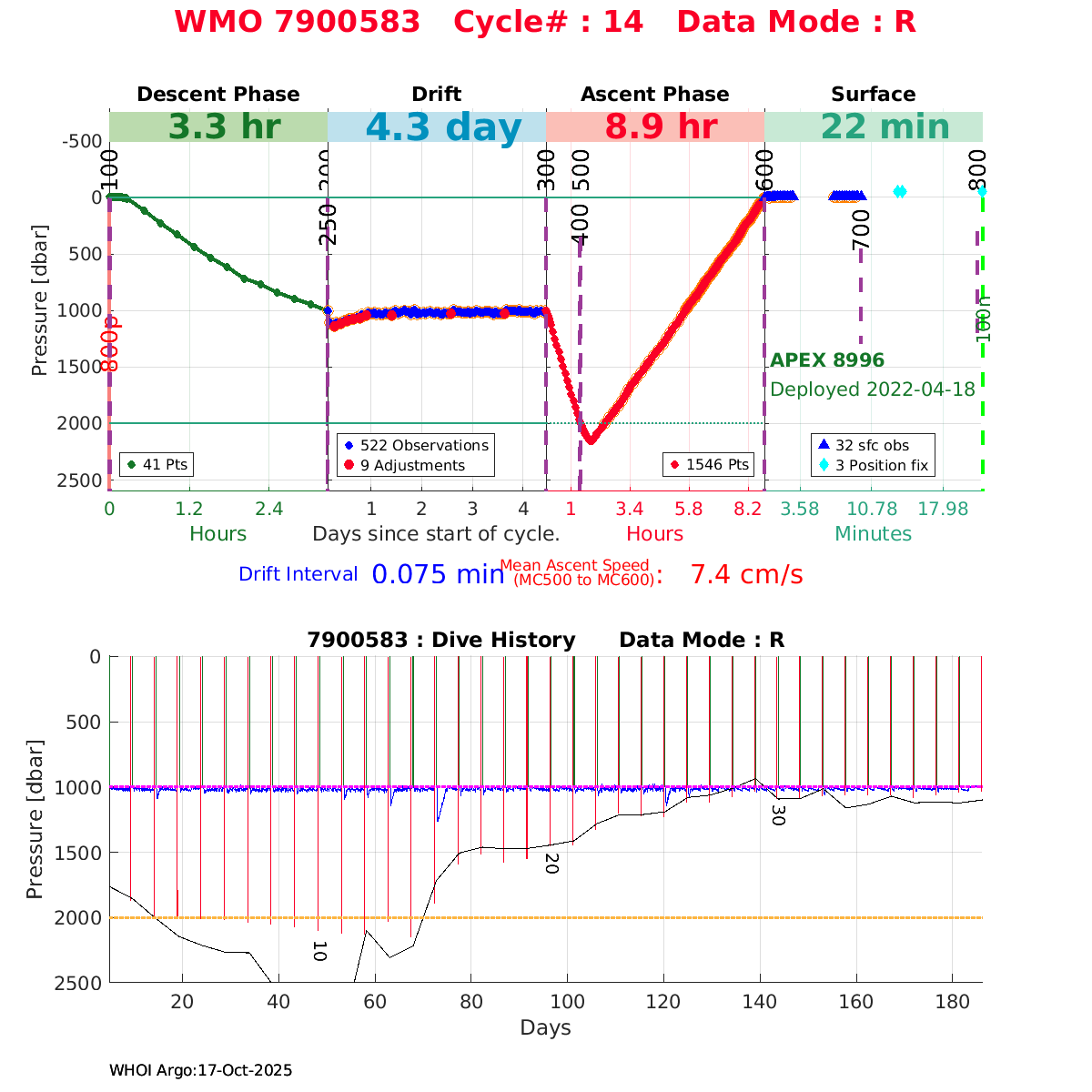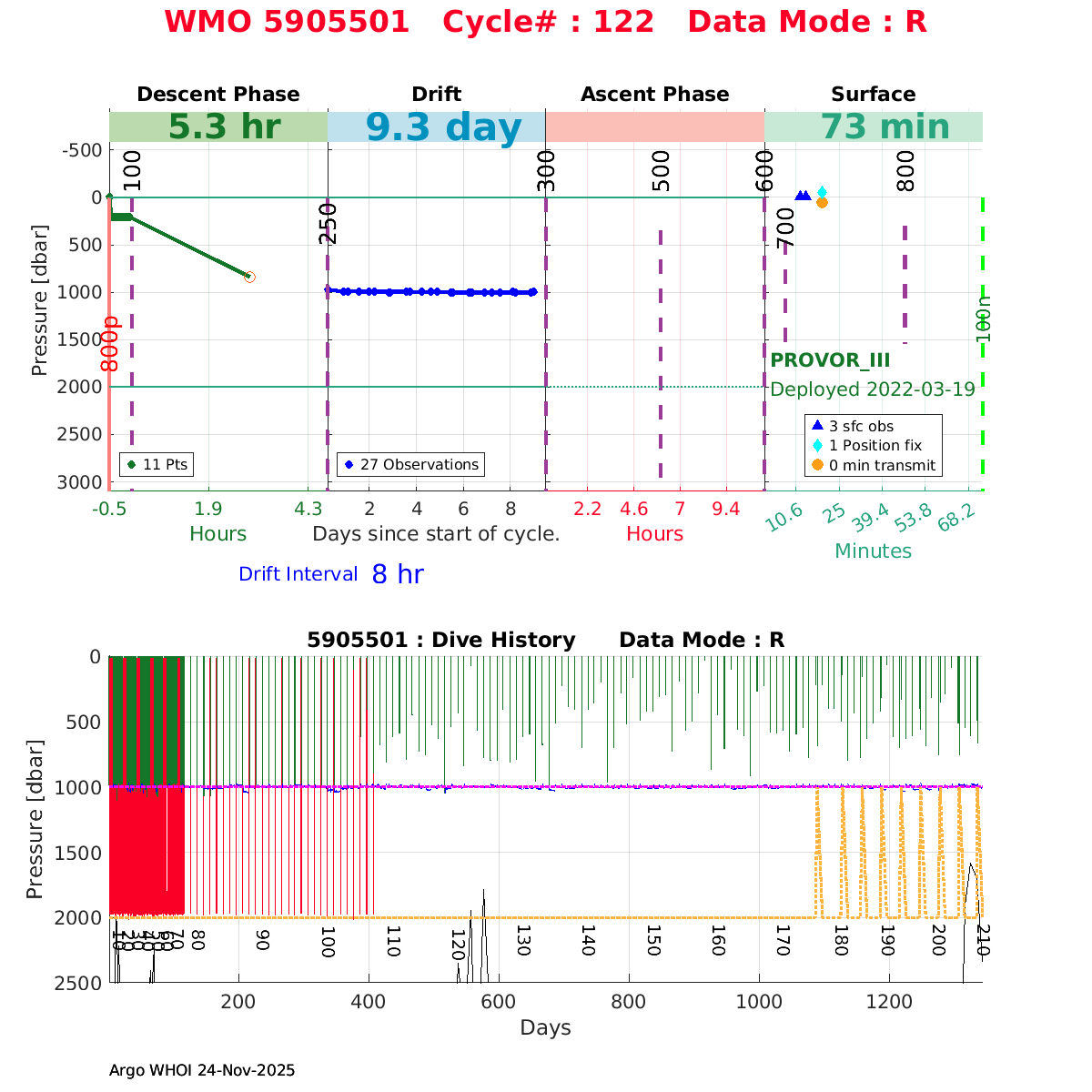 | WMO: #7901001 DAC: coriolis PI: Arne KORTZINGER PROVOR_III: # DRUCK: #11327273 SBE41CP_V7.2.5: #12546 AANDERAA_OPTODE_4330: #3260 ECO_FLBB2: #6079 SEAFET: #10496 Altimeter Comparison (IFREMER) EuroArgo Link | ![]() |