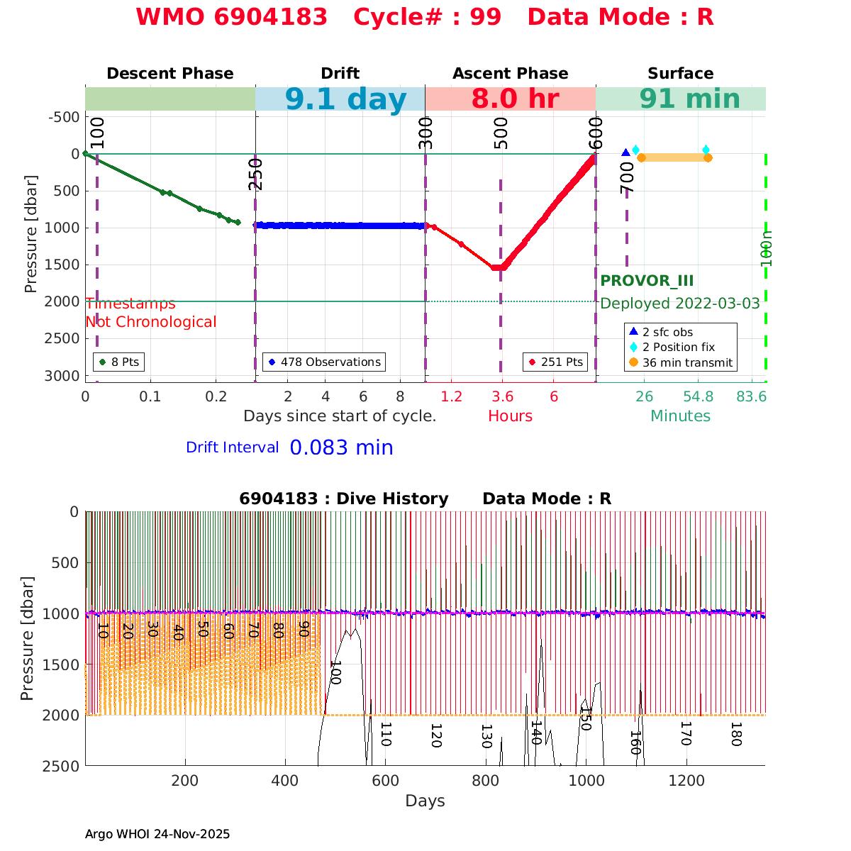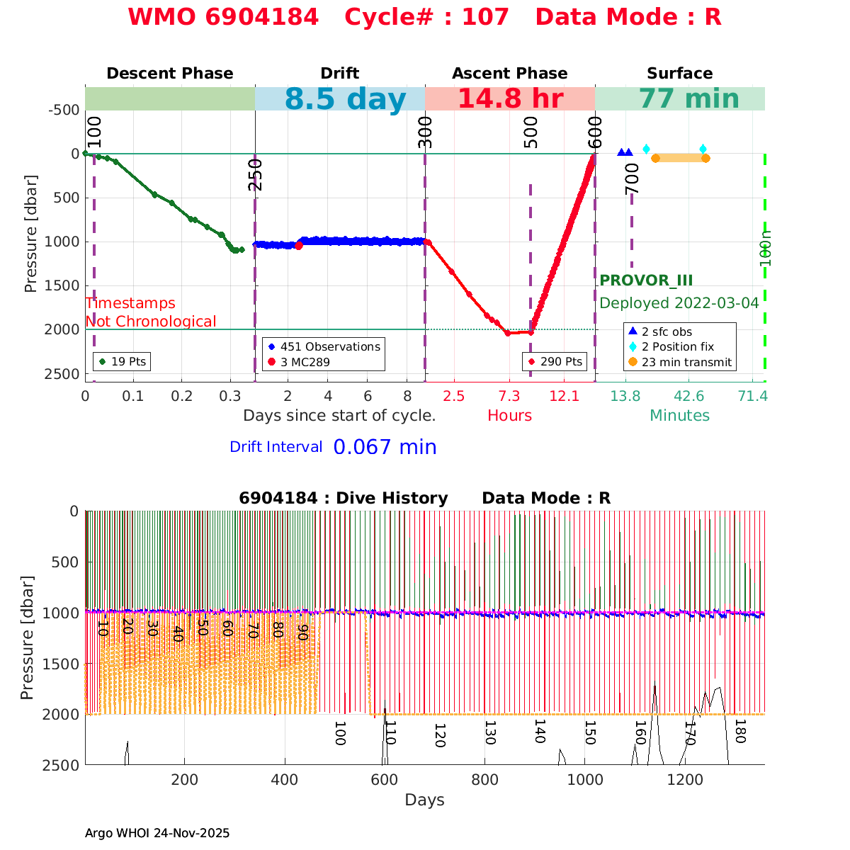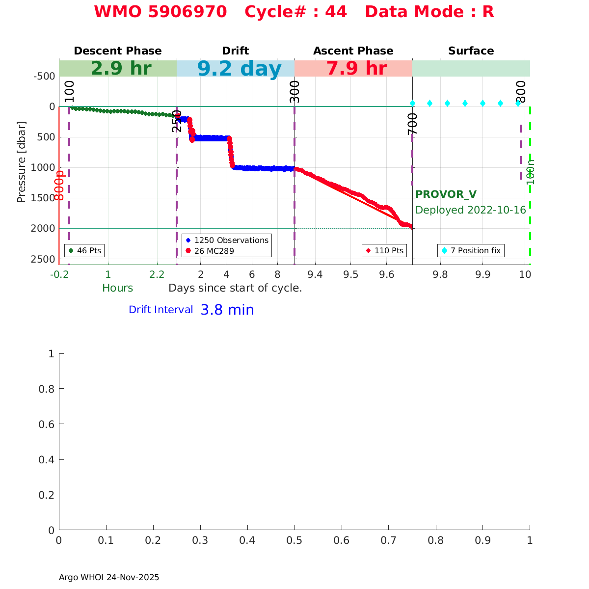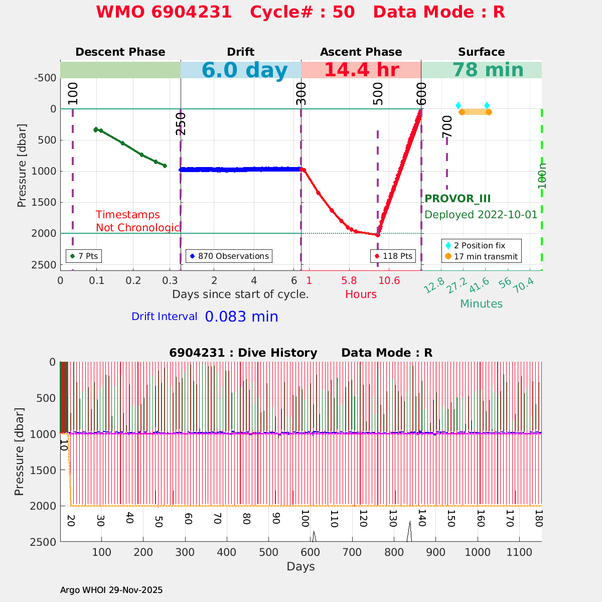 | WMO: #2902878 DAC: csio PI: MEIXUN ZHAO PROVOR_V: # SBE41CP_V7.2.5: #17099 DRUCK_2900PSIA: #12050286 AANDERAA_OPTODE_4330: #3910 SATLANTIC_OCR504_ICSW: #2279 ECO_FLBB2: #7466 SUNA_V2: #1881 SEAFET: #11386 Altimeter Comparison (IFREMER) EuroArgo Link | n/a | n/a | ![]() |