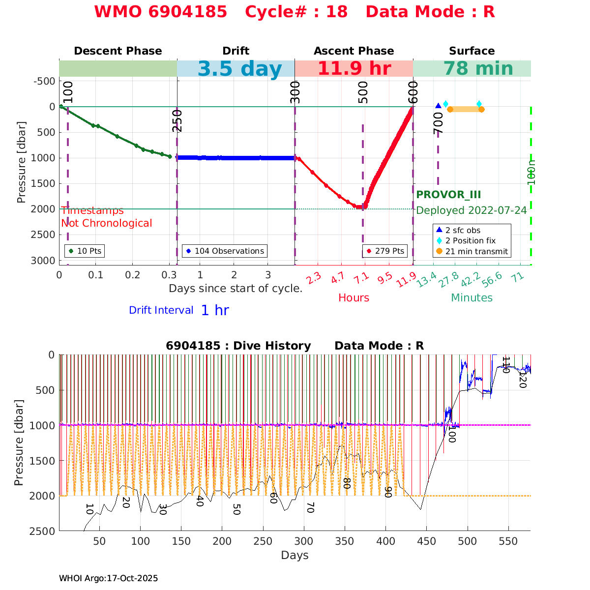 | WMO: #6904240 DAC: coriolis PI: Herve CLAUSTRE PROVOR_V: # DRUCK_2900PSIA: #11701162 SBE41CP: #13846 AANDERAA_OPTODE_4330: #3685 SATLANTIC_OCR504_ICSW: #42141 ECO_FLBBCD: #7155 C_ROVER: #209 SUNA_V2: #1492 SEAFET: #10848 Altimeter Comparison (IFREMER) EuroArgo Link | ![]() |