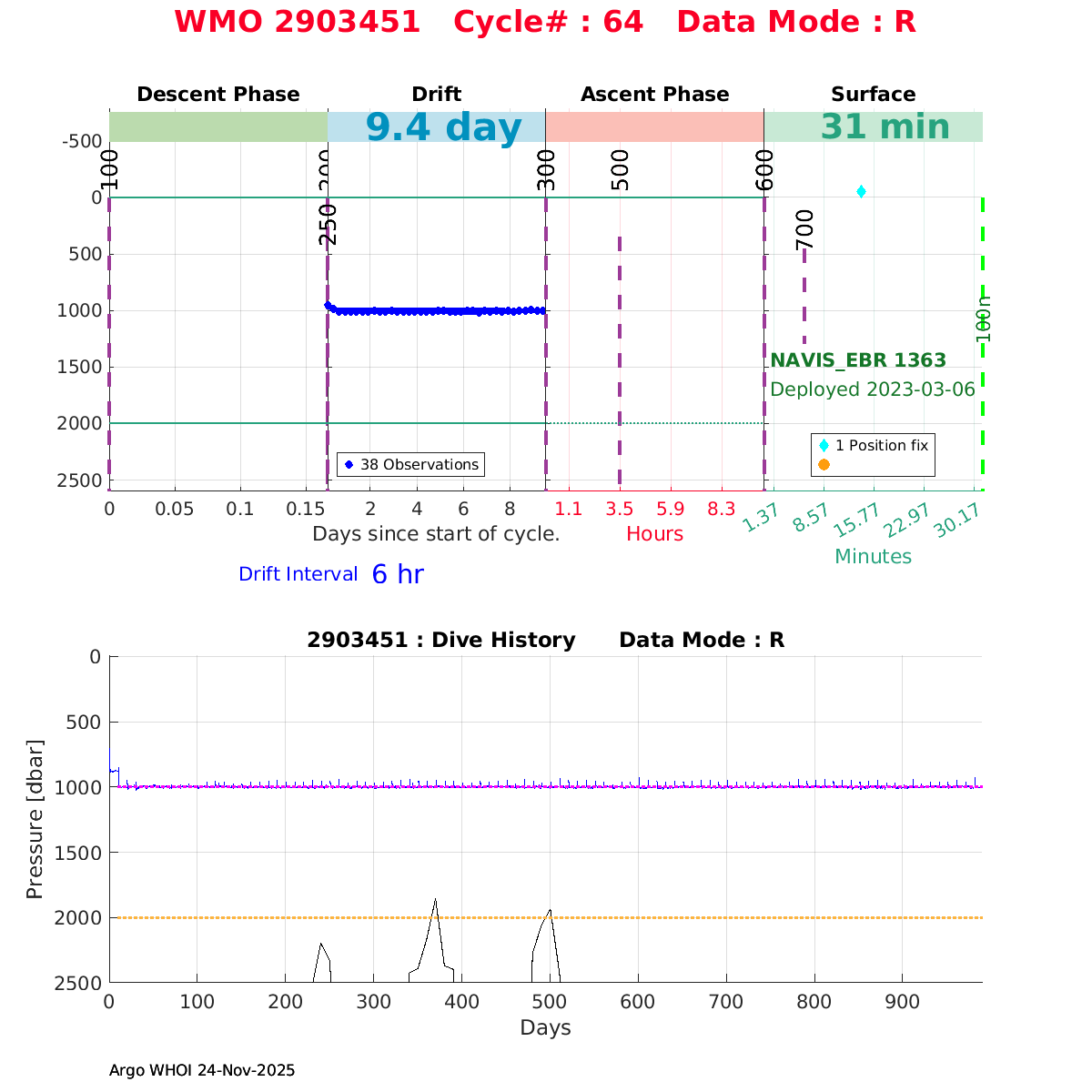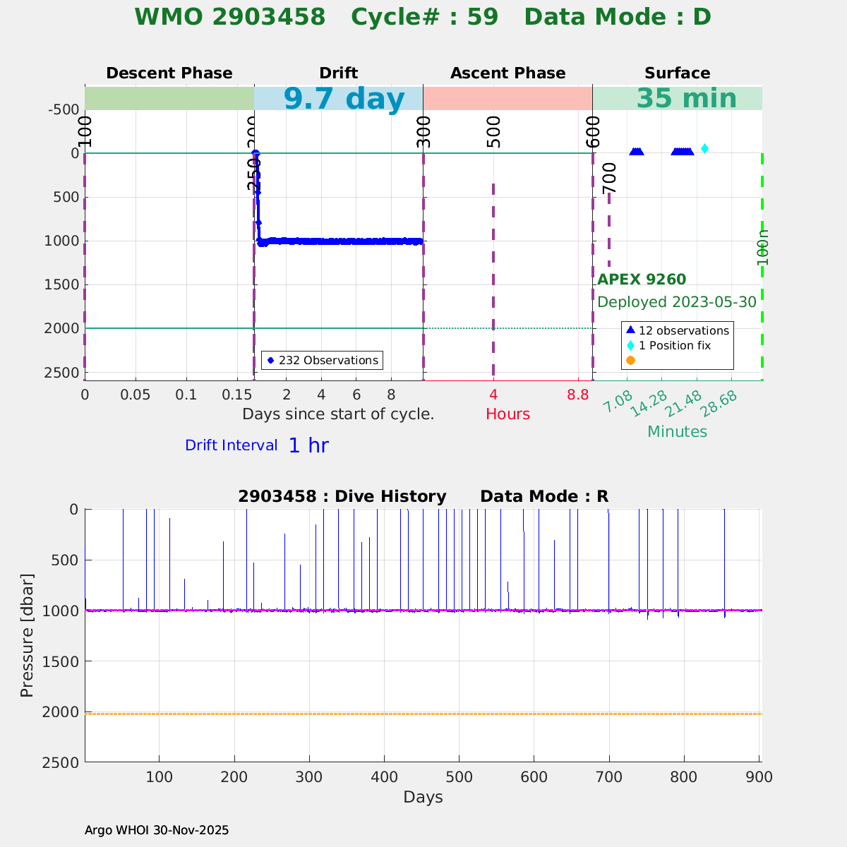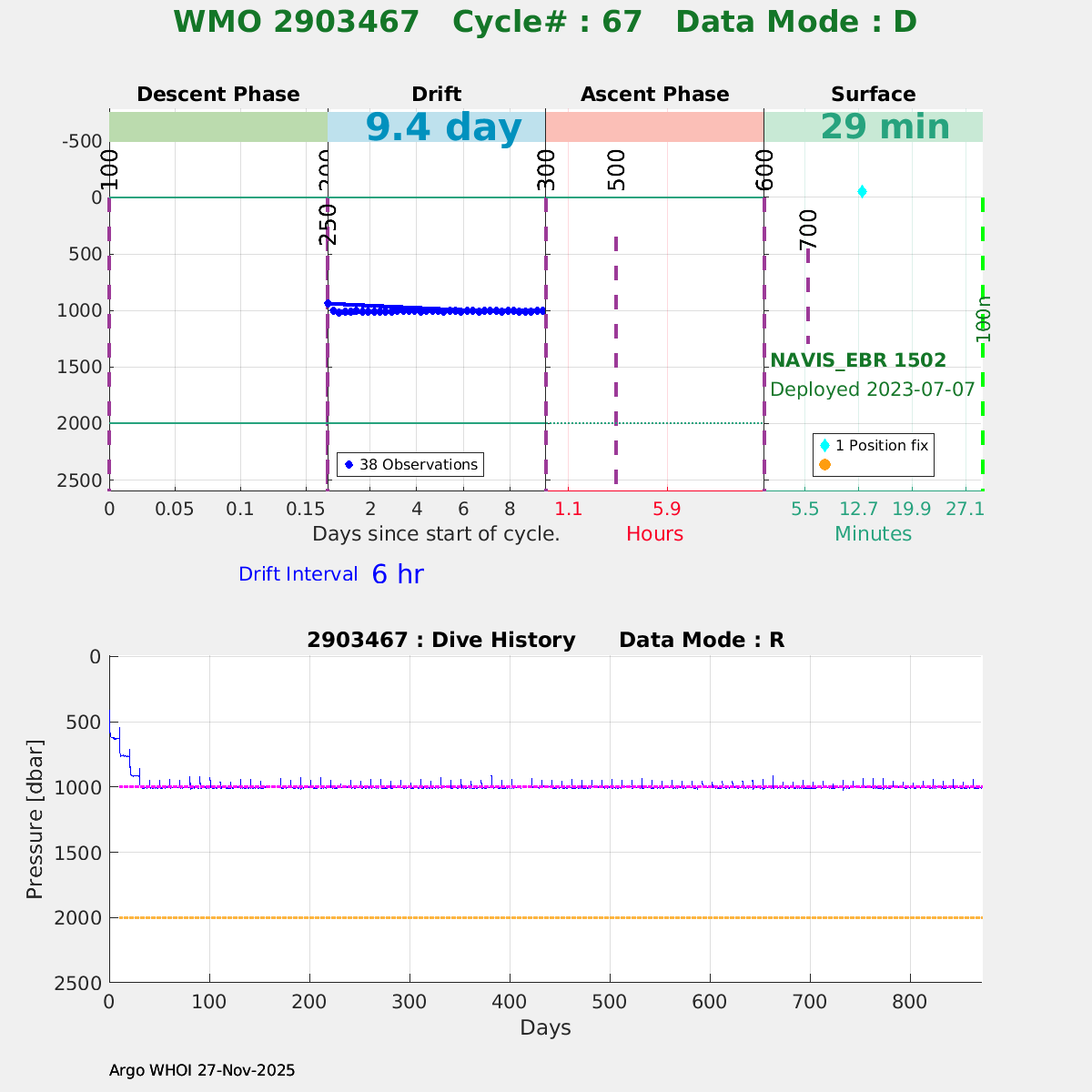 | WMO: #3901578 DAC: bodc PI: Nathan Briggs PROVOR_III: # DRUCK_2900PSIA: #11963020 SBE41CP_V7.2.5: #16899 AANDERAA_OPTODE_4330: #3876 SATLANTIC_OCR504_ICSW: #2265 ECO_FLBBCD: #7293 SEAFET: #11302 SUNA_V2: #1844 Altimeter Comparison (IFREMER) EuroArgo Link | ![]() |