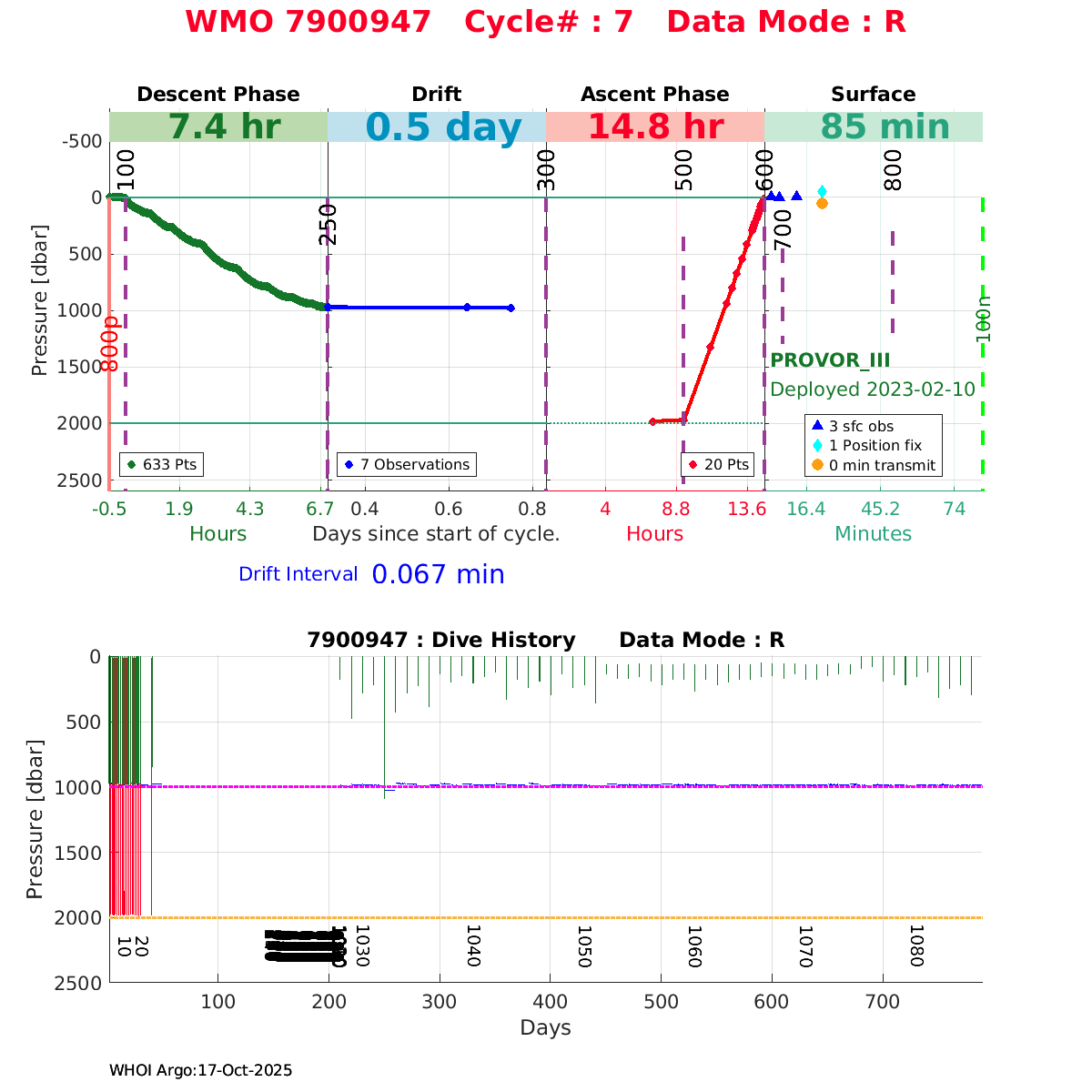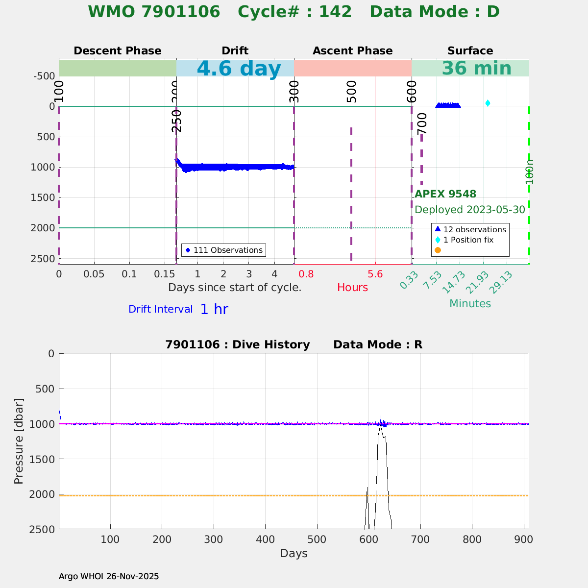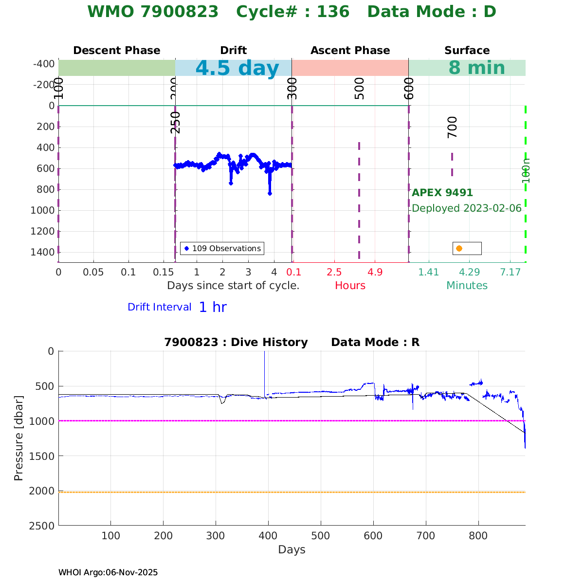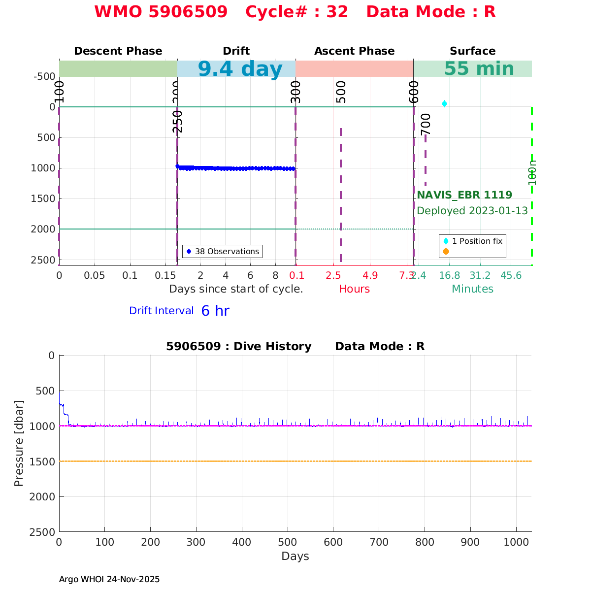 | WMO: #3901578 DAC: bodc PI: Nathan Briggs PROVOR_III: # DRUCK_2900PSIA: #11963020 SBE41CP_V7.2.5: #16899 AANDERAA_OPTODE_4330: #3876 SATLANTIC_OCR504_ICSW: #2265 ECO_FLBBCD: #7293 SEAFET: #11302 SUNA_V2: #1844 Altimeter Comparison (IFREMER) EuroArgo Link | ![]() |