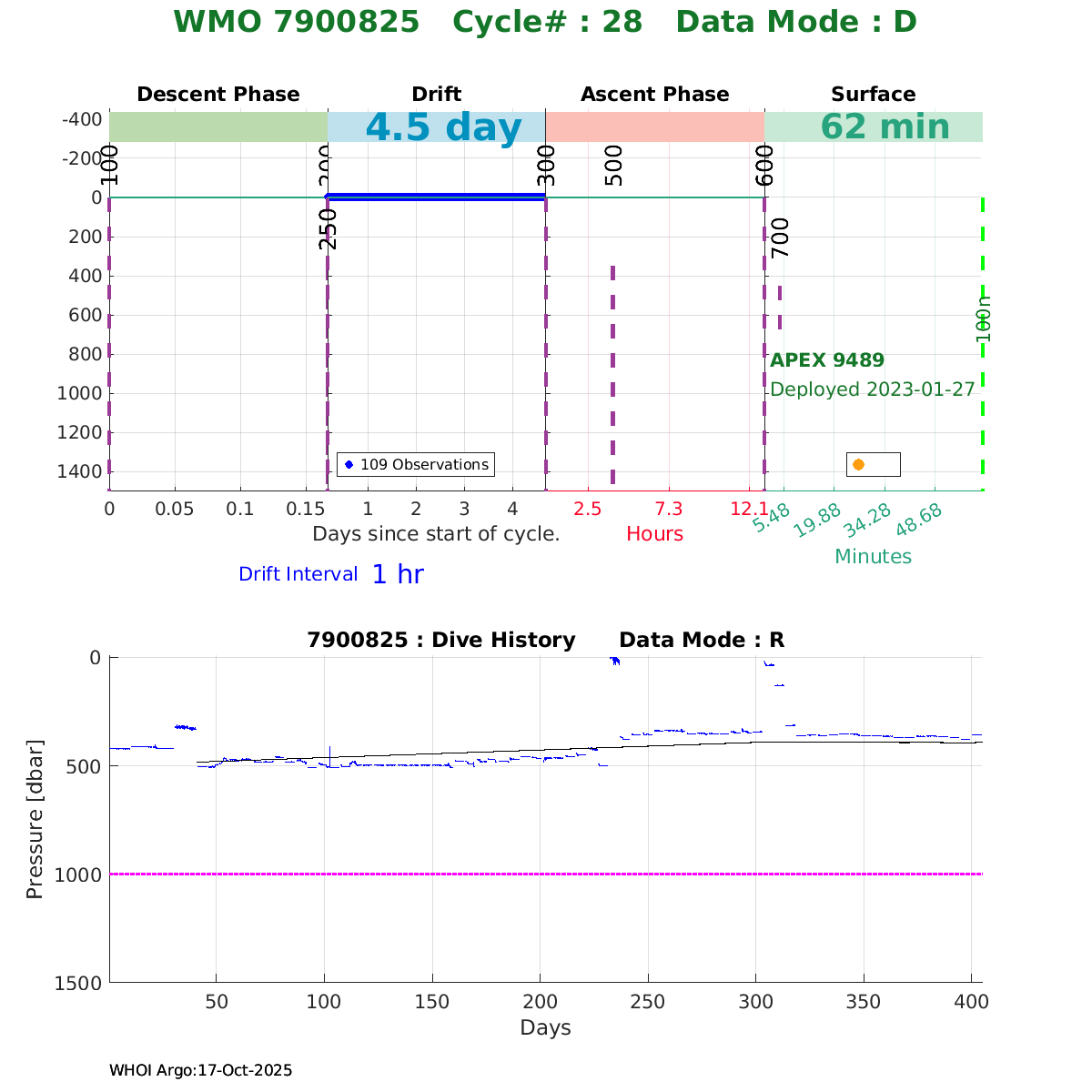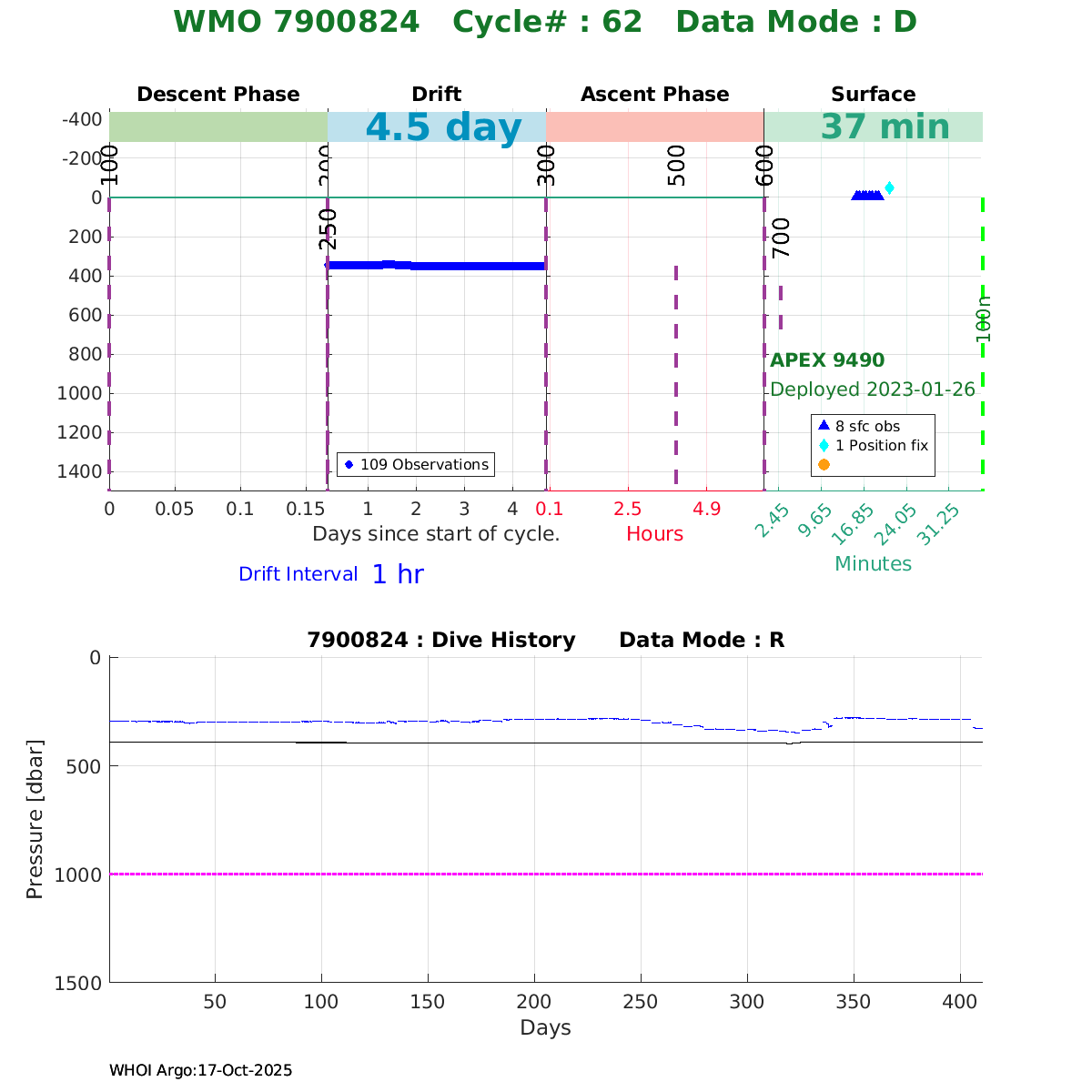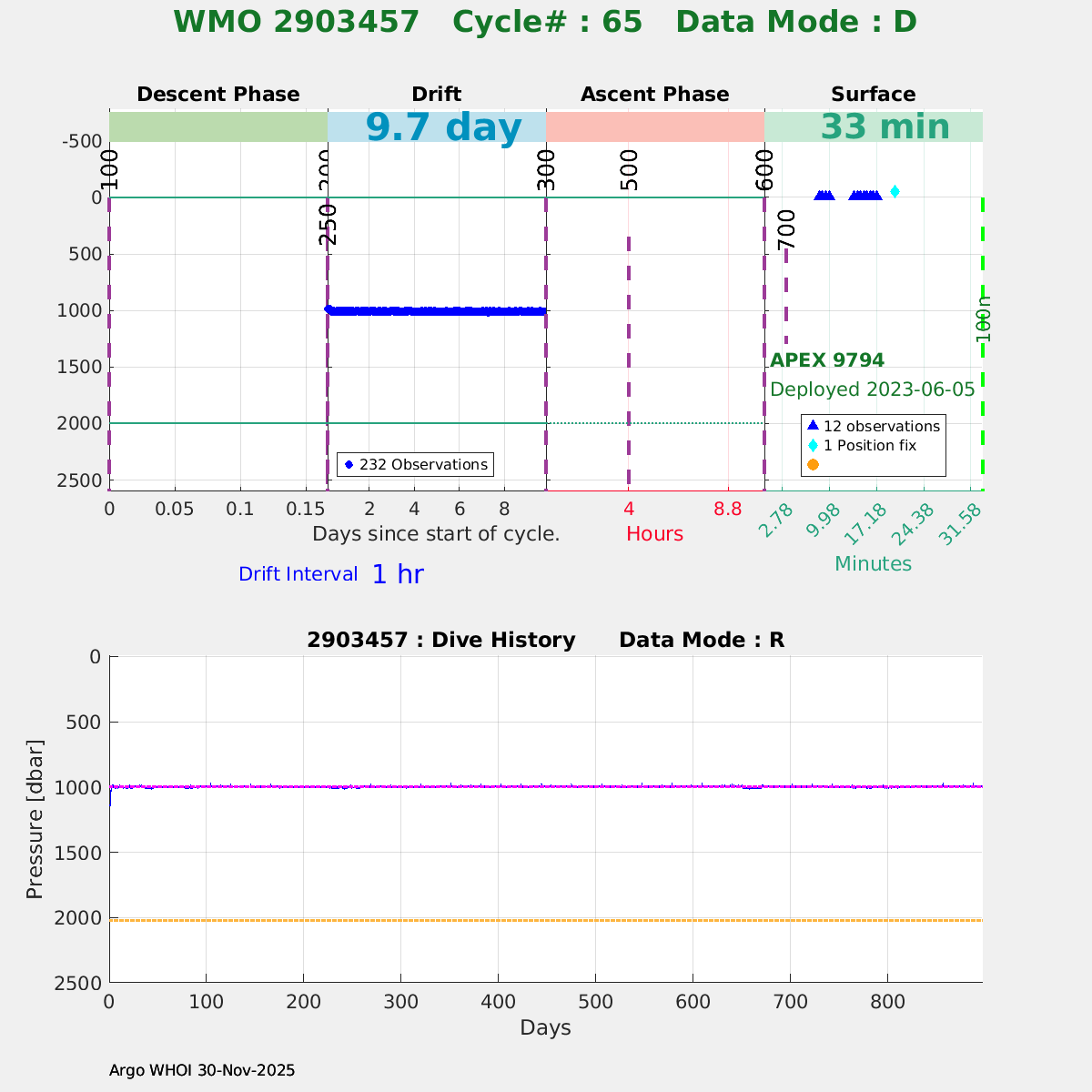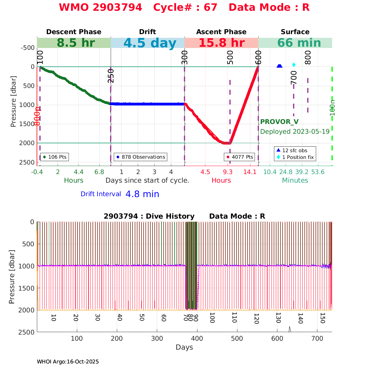 | WMO: #4903662 DAC: bodc PI: Nathan Briggs PROVOR_III: # DRUCK_2900PSIA: #11962997 SBE41CP_V7.2.5: #16898 AANDERAA_OPTODE_4330: #3883 SATLANTIC_OCR504_ICSW: #2271 ECO_FLBBCD: #7294 SEAFET: #11303 SUNA_V2: #1846 Altimeter Comparison (IFREMER) EuroArgo Link | ![]() |