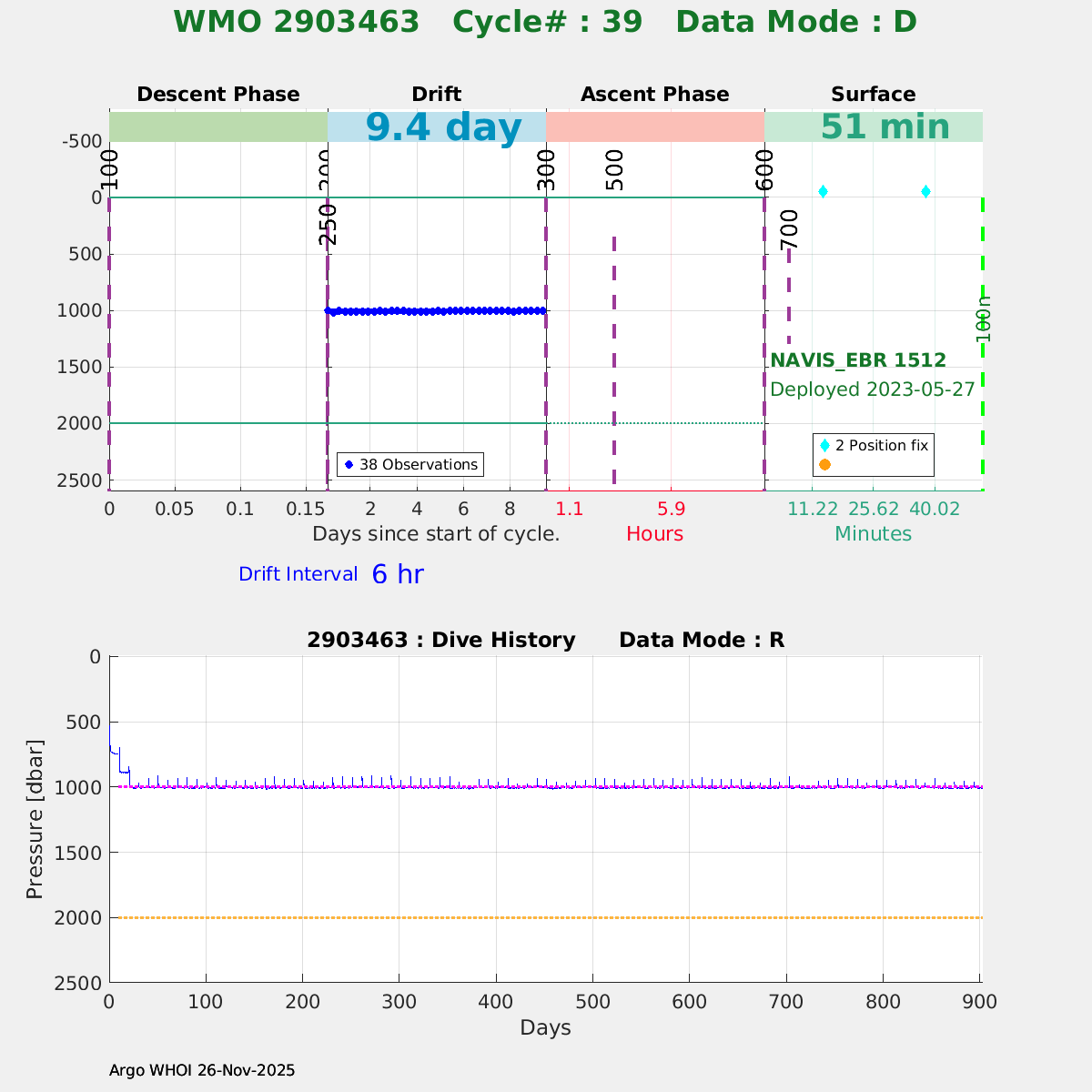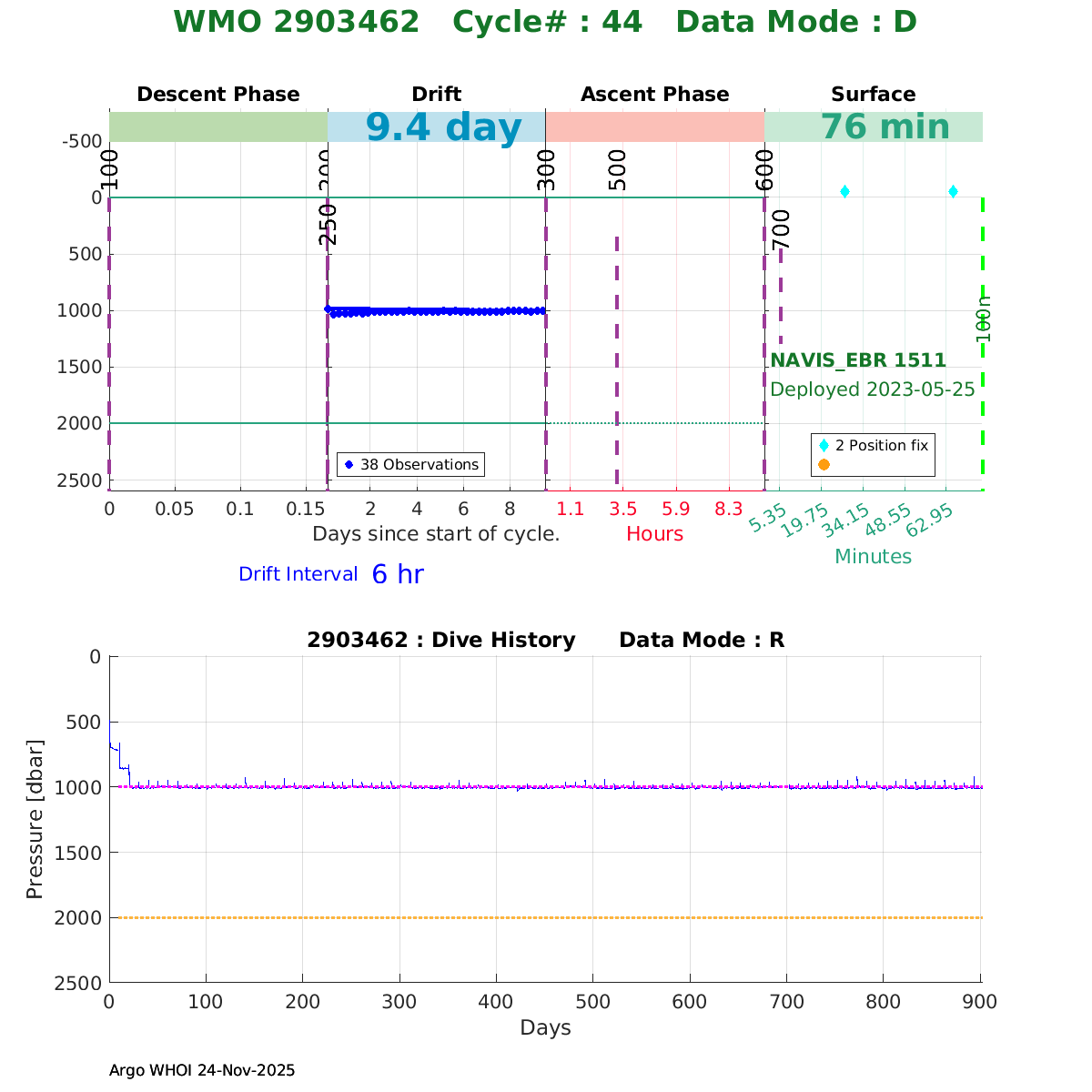 | WMO: #2902884 DAC: csio PI: FEI CHAI NAVIS_A: #1313 SBE41N_V5.3.5: #16712 DRUCK_2900PSIA: #11980563 SBE63_OPTODE: #3015 MCOMS_FLBB2: #0320 SUNA_V2: #1798 SEAFET: #11100 Altimeter Comparison (IFREMER) EuroArgo Link | n/a | n/a | ![]() |