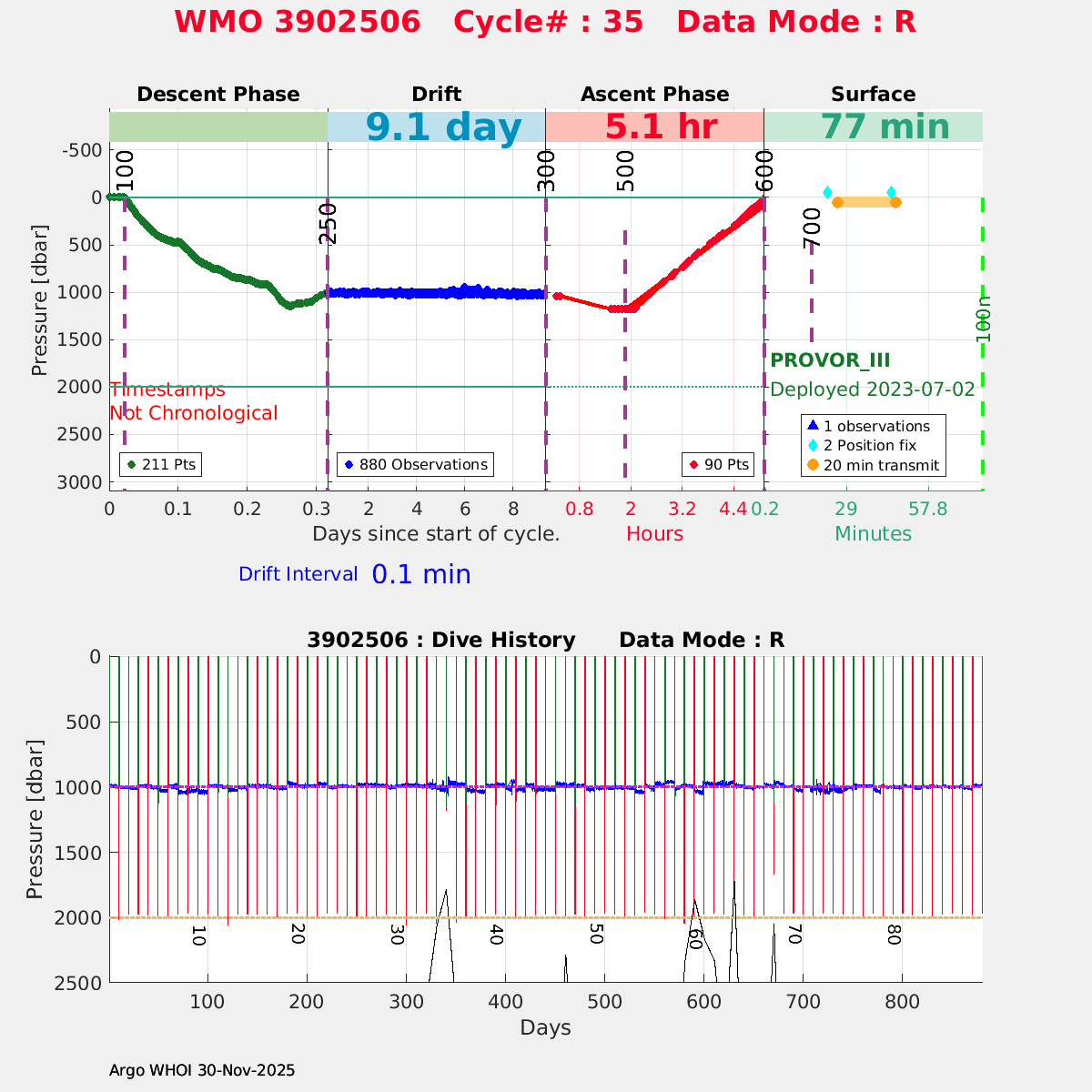 | WMO: #2902886 DAC: csio PI: MEIXUN ZHAO PROVOR_V: # SBE41CP_V7.2.5: #17110 DRUCK_2900PSIA: #12058310 AANDERAA_OPTODE_4330: #3918 SATLANTIC_OCR504_ICSW: #2286 ECO_FLBB2: #7468 SUNA_V2: #1879 SEAFET: #11095 Altimeter Comparison (IFREMER) EuroArgo Link | n/a | n/a | ![]() |