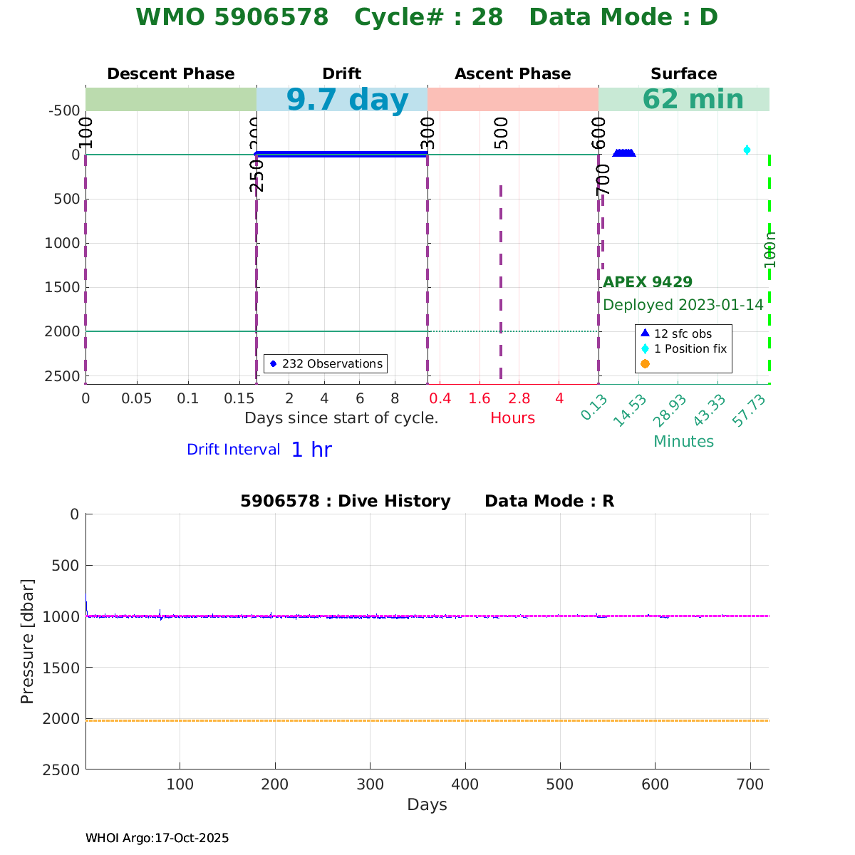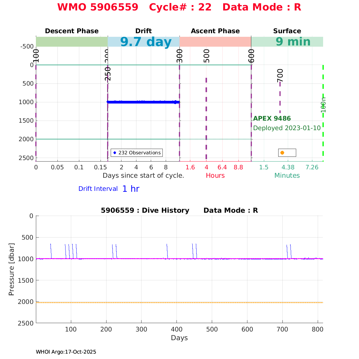 | WMO: #5906560 DAC: aoml PI: STEPHEN RISER/KEN JOHNSON APEX: #9487 SBE41CP: #16669 DRUCK_2900PSIA: #11920472 AANDERAA_OPTODE_4330: #3830 ISUS: #0999 DURA: #0999 ECO_FLBB_AP2: #7163 Altimeter Comparison (IFREMER) EuroArgo Link | ![]() |