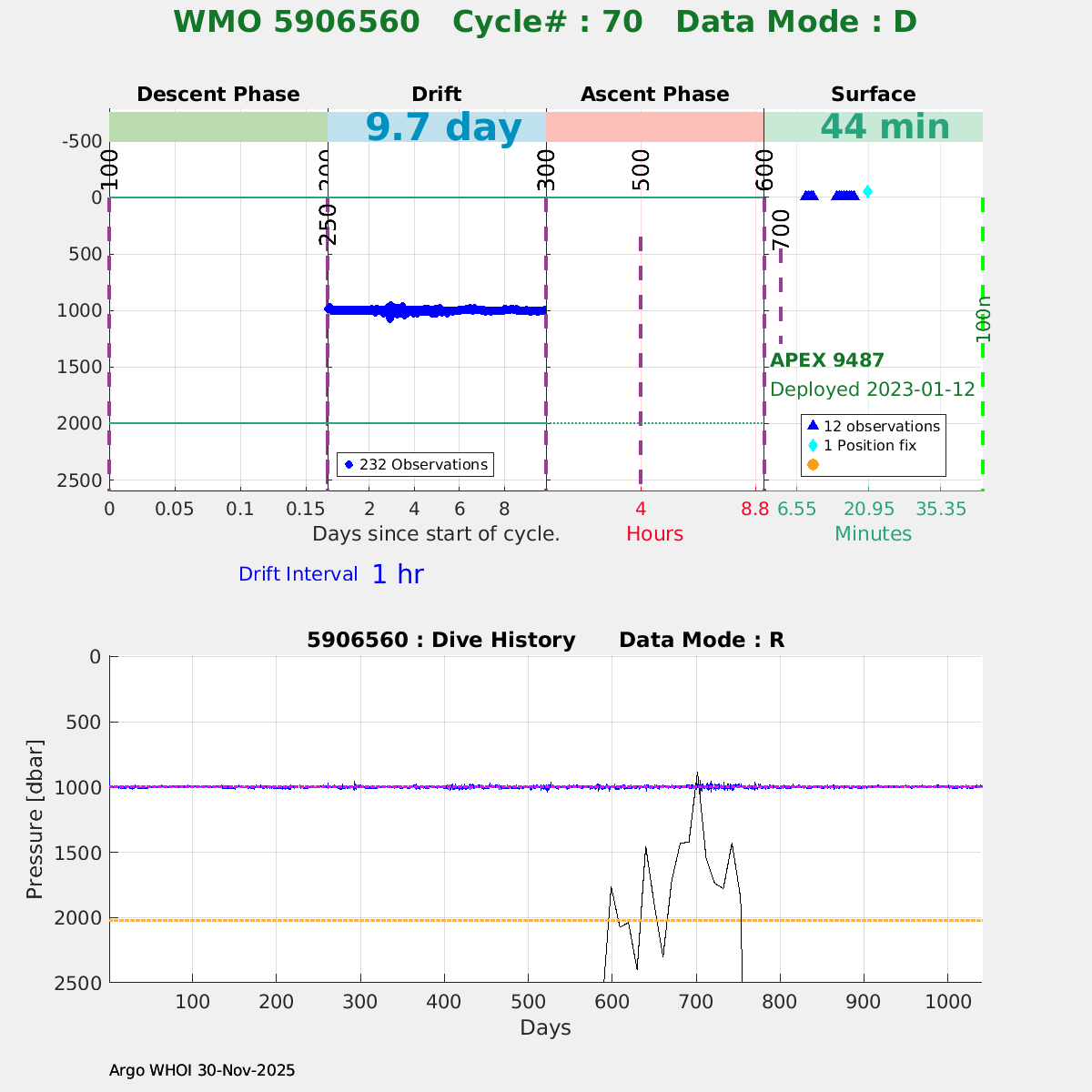 | WMO: #6904186 DAC: bodc PI: Nathan Briggs PROVOR_III: # DRUCK_2900PSIA: #11892859 SBE41CP_V7.2.5: #14442 AANDERAA_OPTODE_4330: #3677 SATLANTIC_OCR504_ICSW: #2223 ECO_FLBBCD: #6944 SEAFET: #11080 SUNA_V2: #1775 Altimeter Comparison (IFREMER) EuroArgo Link | ![]() |