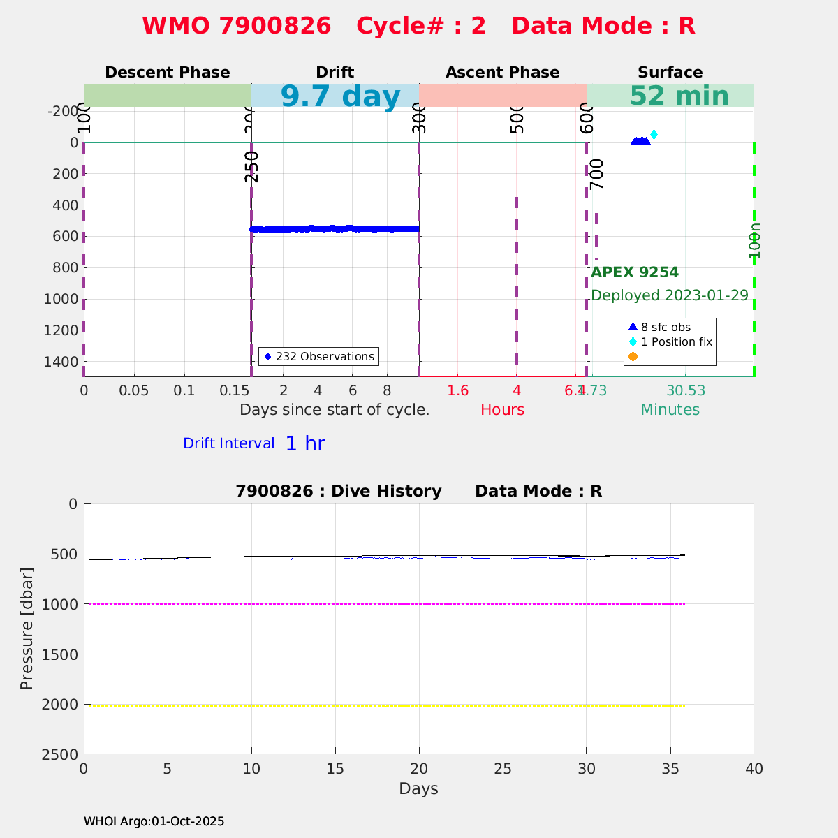 | WMO: #5907051 DAC: aoml PI: STEPHEN RISER/KEN JOHNSON APEX: #9787 SBE41CP: #17384 DRUCK_2900PSIA: #12105716 AANDERAA_OPTODE_4330: #3848 ISUS: #1066 DURA: #1066 ECO_FLBB_AP2: #7400 Altimeter Comparison (IFREMER) EuroArgo Link | ![]() |