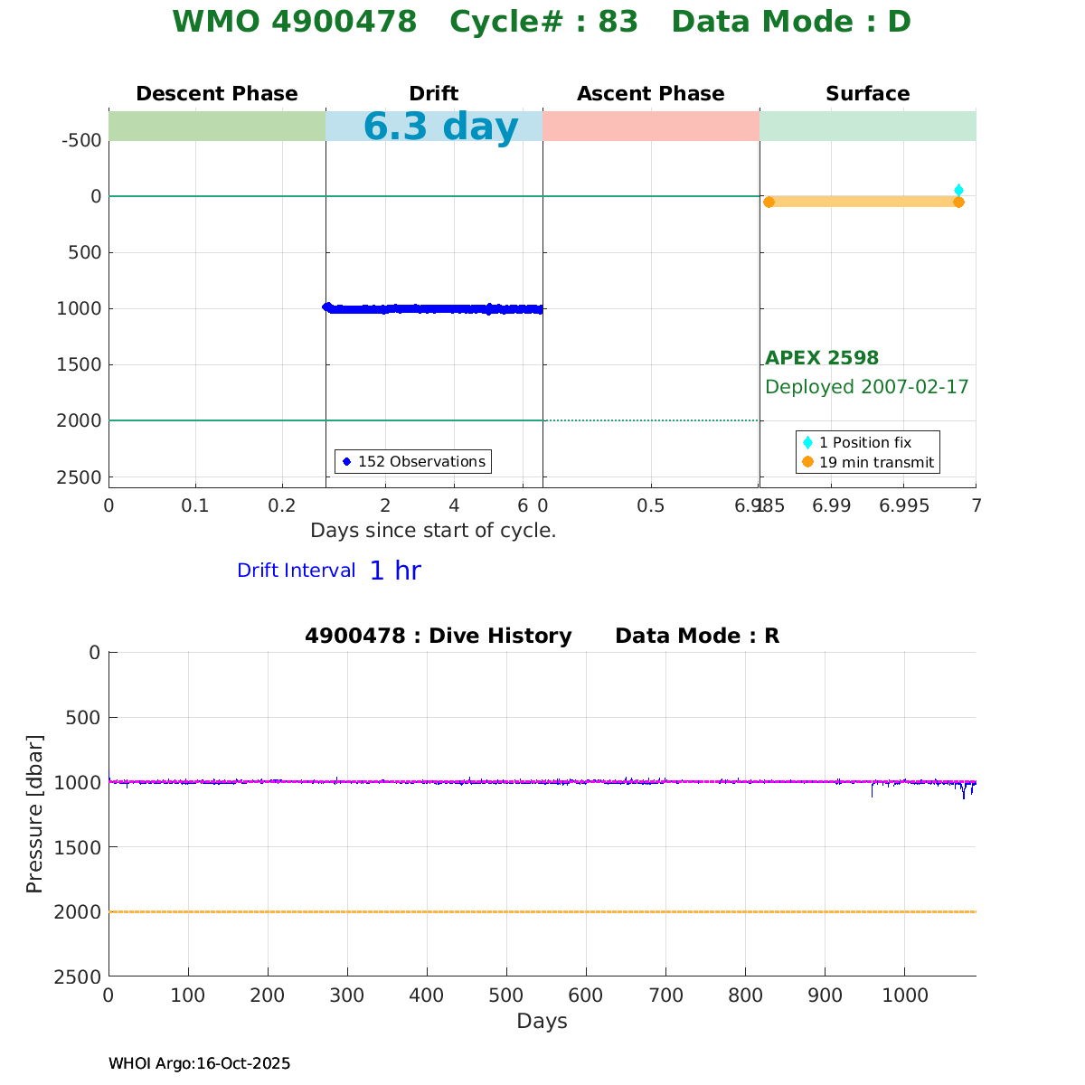 | WMO: #5901450 DAC: aoml PI: STEPHEN RISER APEX: #3248 SBE41CP: #1931 DRUCK_2900PSIA: #2409684 SBE43F_IDO: #0217 Altimeter Comparison (IFREMER) EuroArgo Link | ![]() |