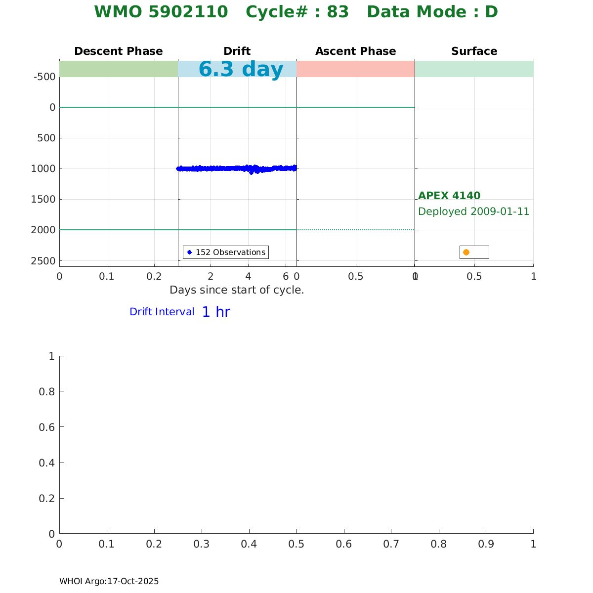 | WMO: #5902110 DAC: aoml PI: STEPHEN RISER APEX: #4140 SBE41CP: #2372 DRUCK_2900PSIA: #2690144 SBE43F_IDO: #0415 Altimeter Comparison (IFREMER) EuroArgo Link | ![]() |