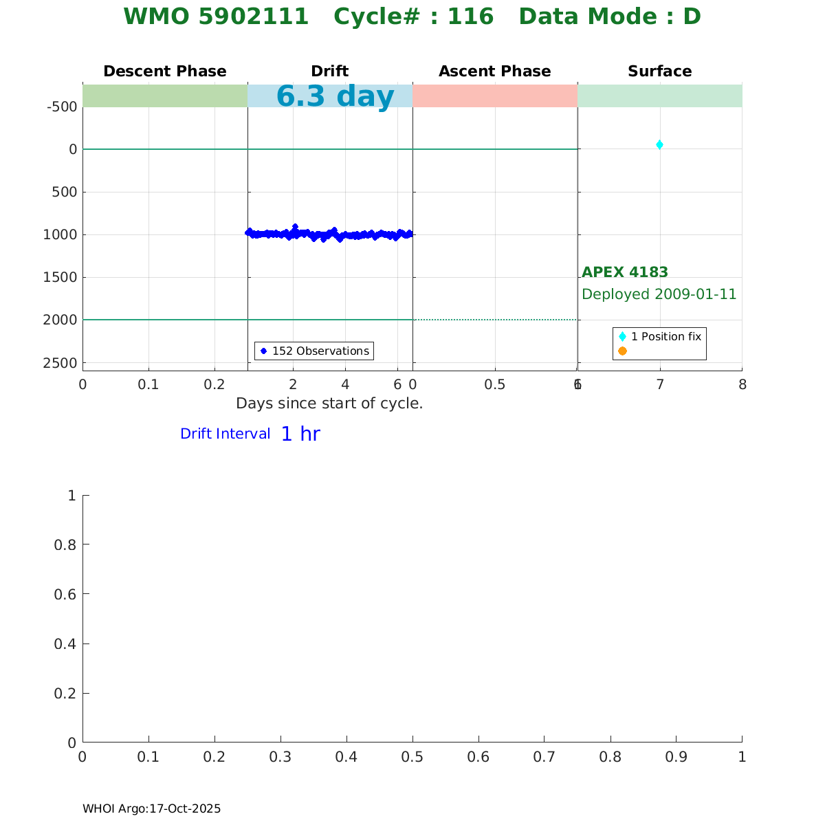 | WMO: #5902116 DAC: aoml PI: STEPHEN RISER APEX: #4139 SBE41CP: #2371 DRUCK_2900PSIA: #2642547 SBE43F_IDO: #0407 Altimeter Comparison (IFREMER) EuroArgo Link | ![]() |