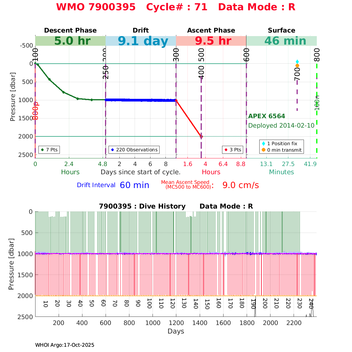 | WMO: #7900395 DAC: csiro PI: Susan Wijffels APEX: #6564 SBE41CP_V2: #4829 DRUCK: #3514765 Altimeter Comparison (IFREMER) EuroArgo Link | ![]() |