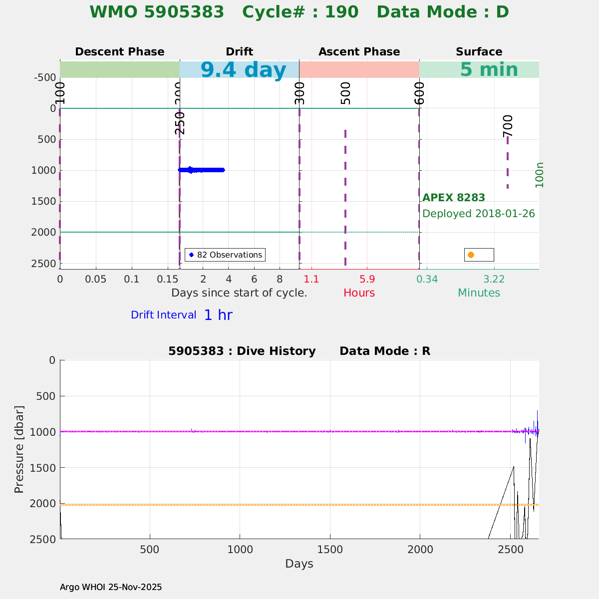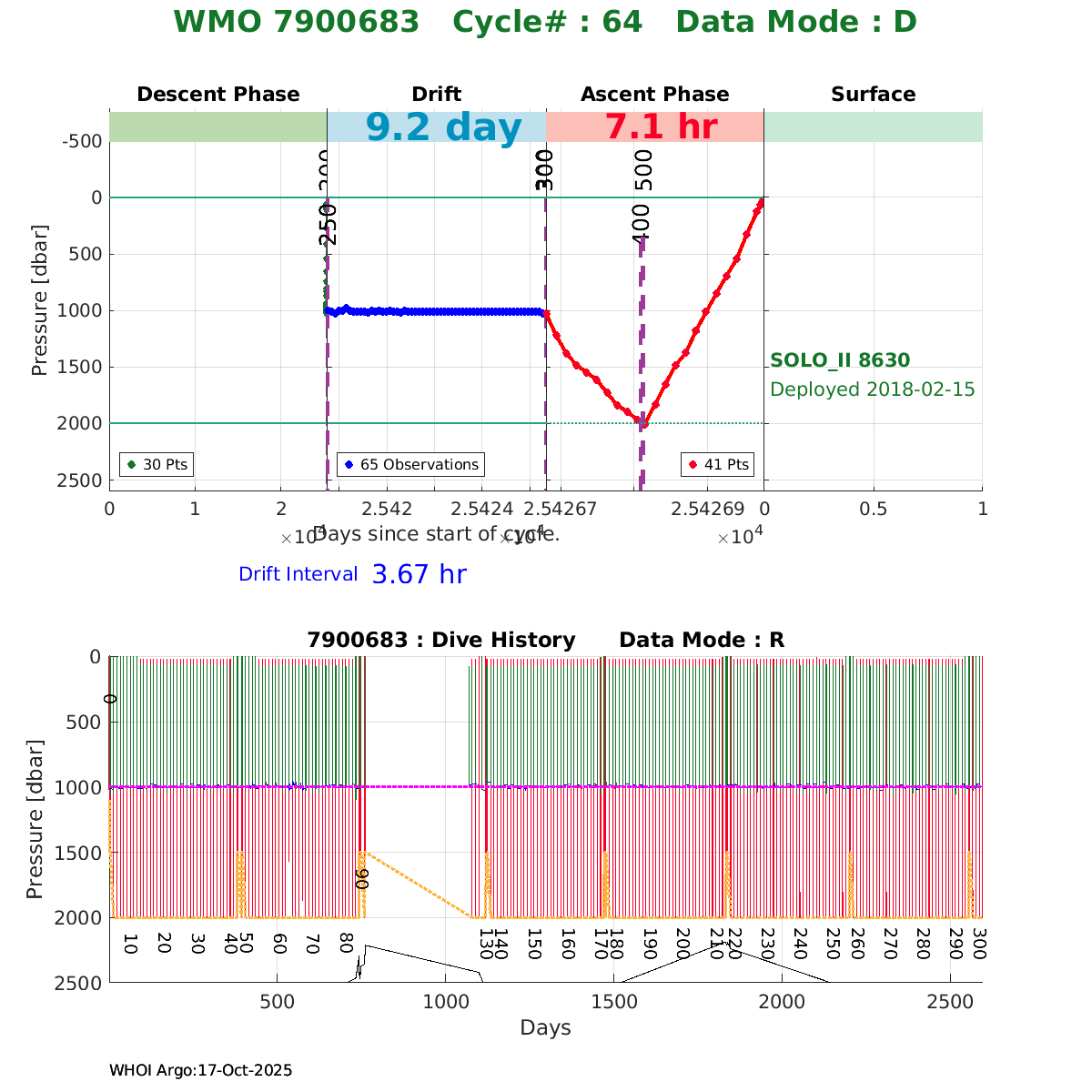 | WMO: #7900683 DAC: aoml PI: Dean ROEMMICH SOLO_II: #8630 DRUCK_2900PSIA: #10300515 SBE41CP: #8721 Altimeter Comparison (IFREMER) EuroArgo Link | ![]() |