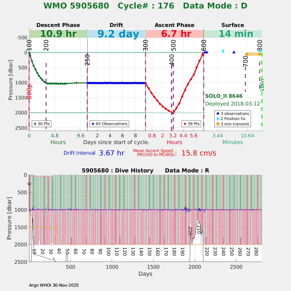| WMO: #5905680 DAC: aoml PI: Dean ROEMMICH SOLO_II: #8646 DRUCK_2900PSIA: #10648933 SBE41CP: #9797 Altimeter Comparison (IFREMER) EuroArgo Link | ![]() |