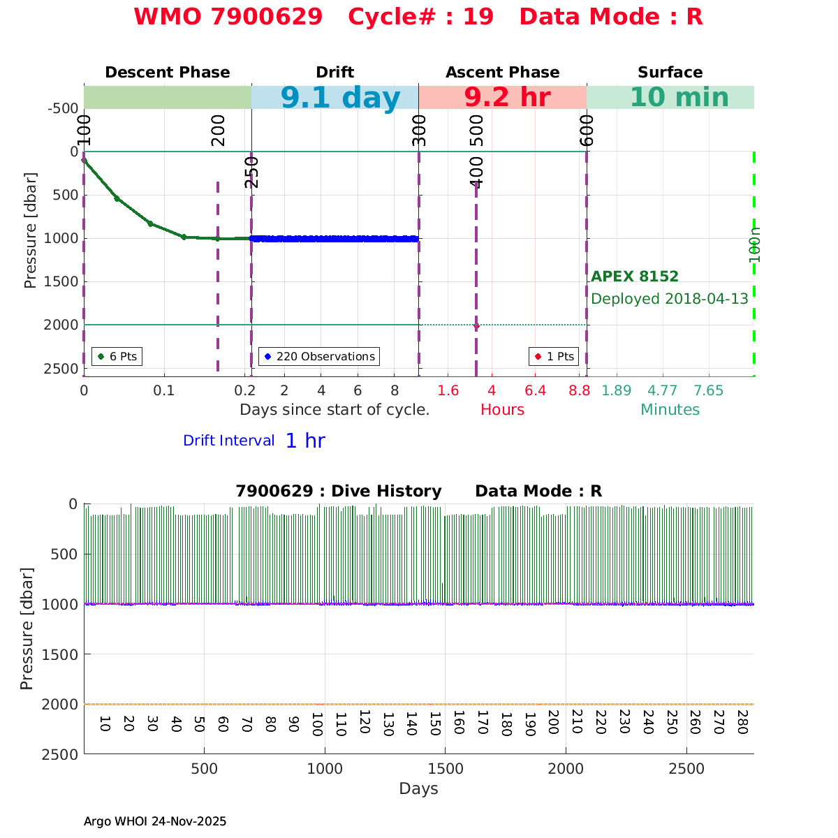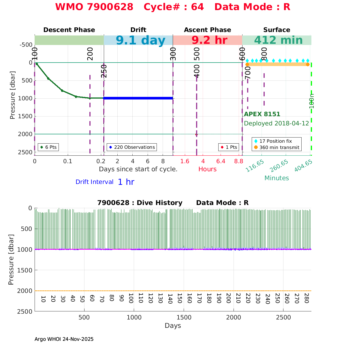| WMO: #7900628 DAC: csiro PI: Steve RINTOUL APEX: #8151 DRUCK: #10450837 SBE41CP: #9346 Altimeter Comparison (IFREMER) EuroArgo Link | ![]() |