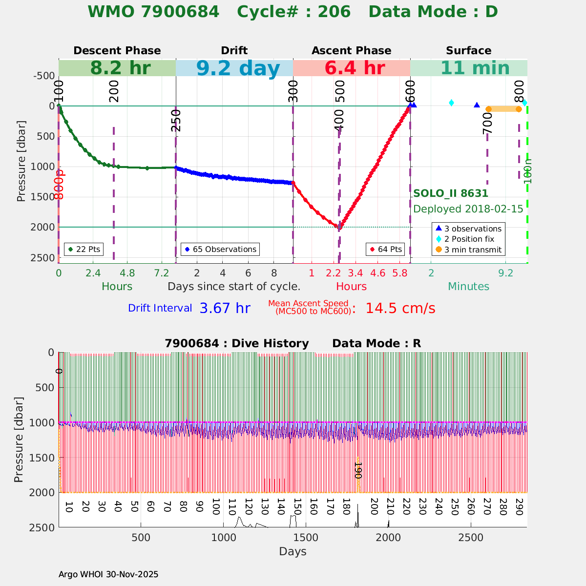 | WMO: #7900684 DAC: aoml PI: Dean ROEMMICH SOLO_II: #8631 DRUCK_2900PSIA: #10445348 SBE41CP: #9324 Altimeter Comparison (IFREMER) EuroArgo Link | ![]() |