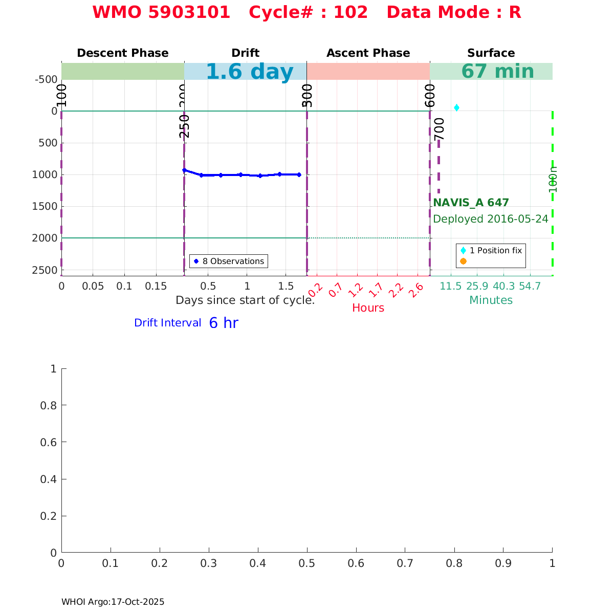 | WMO: #5903101 DAC: aoml PI: EMMANUEL BOSS NAVIS_A: #647 SBE41N: #8137 SBE63_OPTODE: #1216 MCOMS_FLBBCD: #122 SATLANTIC_PAR: #1049 Altimeter Comparison (IFREMER) EuroArgo Link | ![]() |