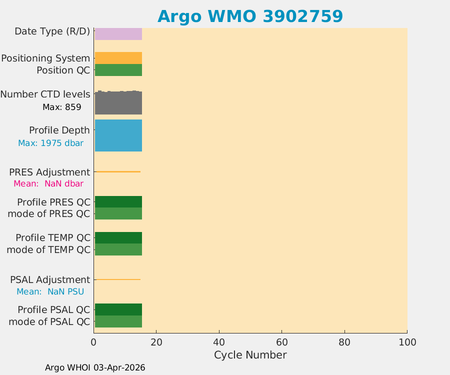 | WMO: #4903070 DAC: aoml PI: PETER BRICKLEY SOLO_D MRV: #12087 SBE: #6125 KISTLER_10153PSIA: #6230178 Altimeter Comparison (IFREMER) EuroArgo Link | n/a | n/a | ![]() |