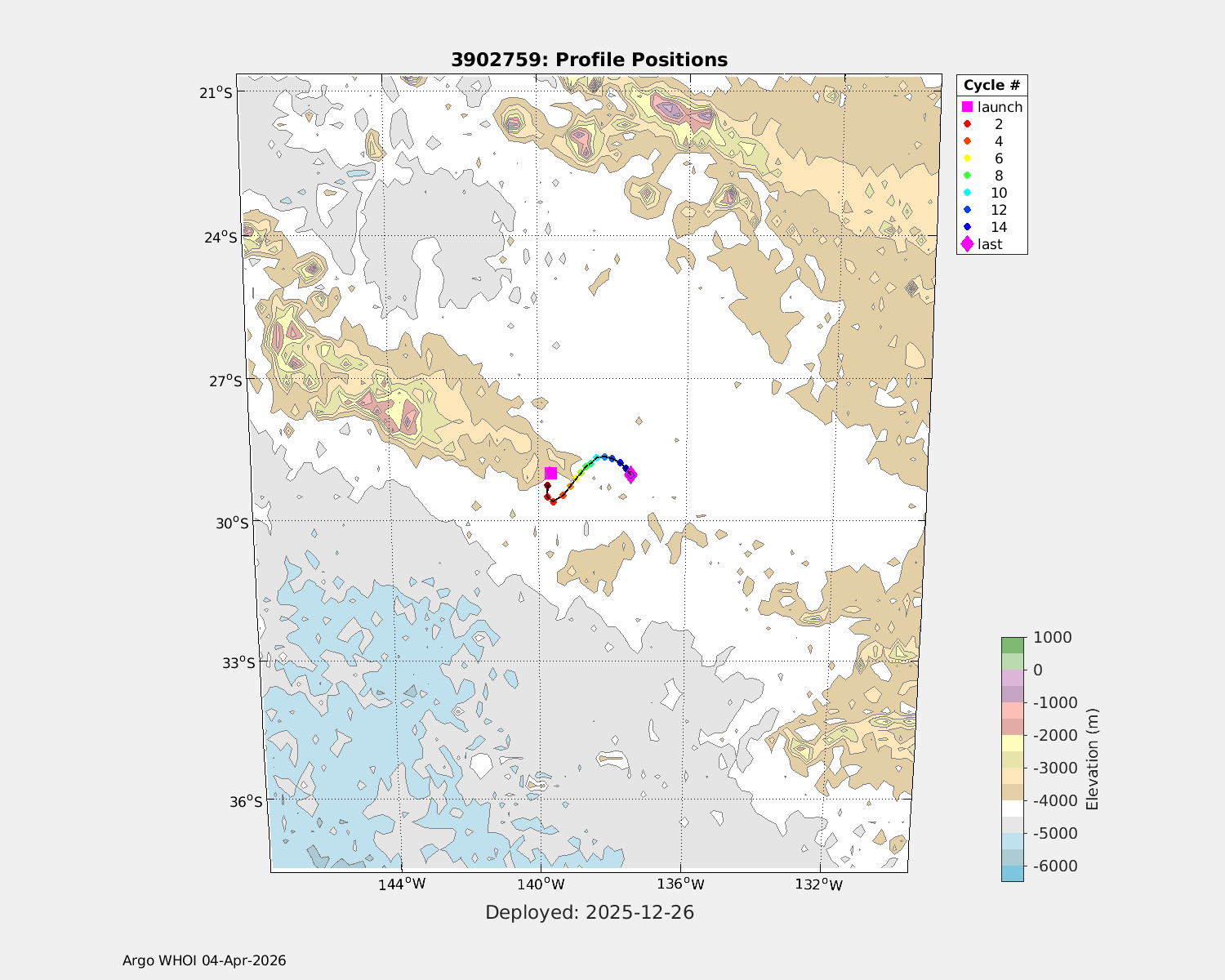 | WMO: #4903904 DAC: aoml PI: MOLLY BARINGER, CANDICE HALL, EMILY OSBORNE NAVIS_EBR: #1752 SBE41CP: #21471 DRUCK_2900PSIA: #13134468 SBE83_OPTODE: #0244 SUNA_V2: #2470 SEAFET: #20638-21550 MCOMS_FLBBCD: #554 Altimeter Comparison (IFREMER) EuroArgo Link | ![]() |