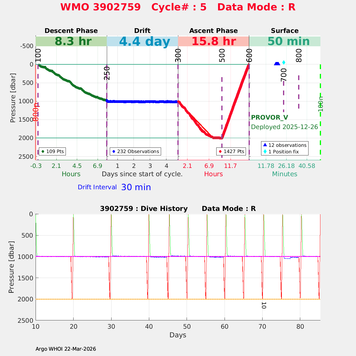 | WMO: #4903071 DAC: aoml PI: PETER BRICKLEY SOLO_D MRV: #12088 SBE: #6147 KISTLER_10153PSIA: #6230219 Altimeter Comparison (IFREMER) EuroArgo Link | n/a | n/a | ![]() |